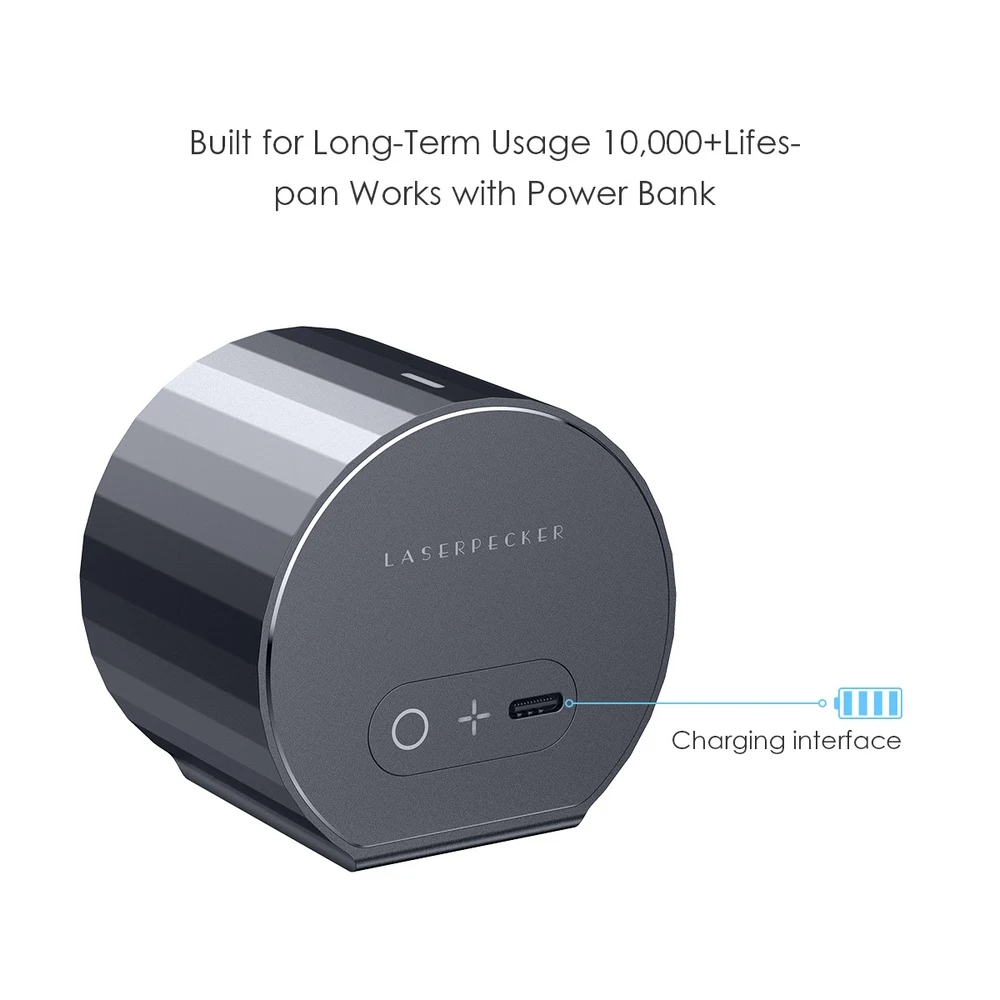 【Portable and Strong Light Design】The compact laser etcher can be take anywhere and powered by power bank; NO base design, NO limit on Engraving Height, Supported File Formats: JPG / BMP /PNG /G-code , Photo/Vector both supported