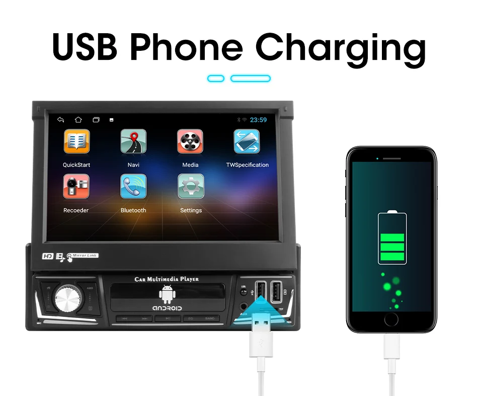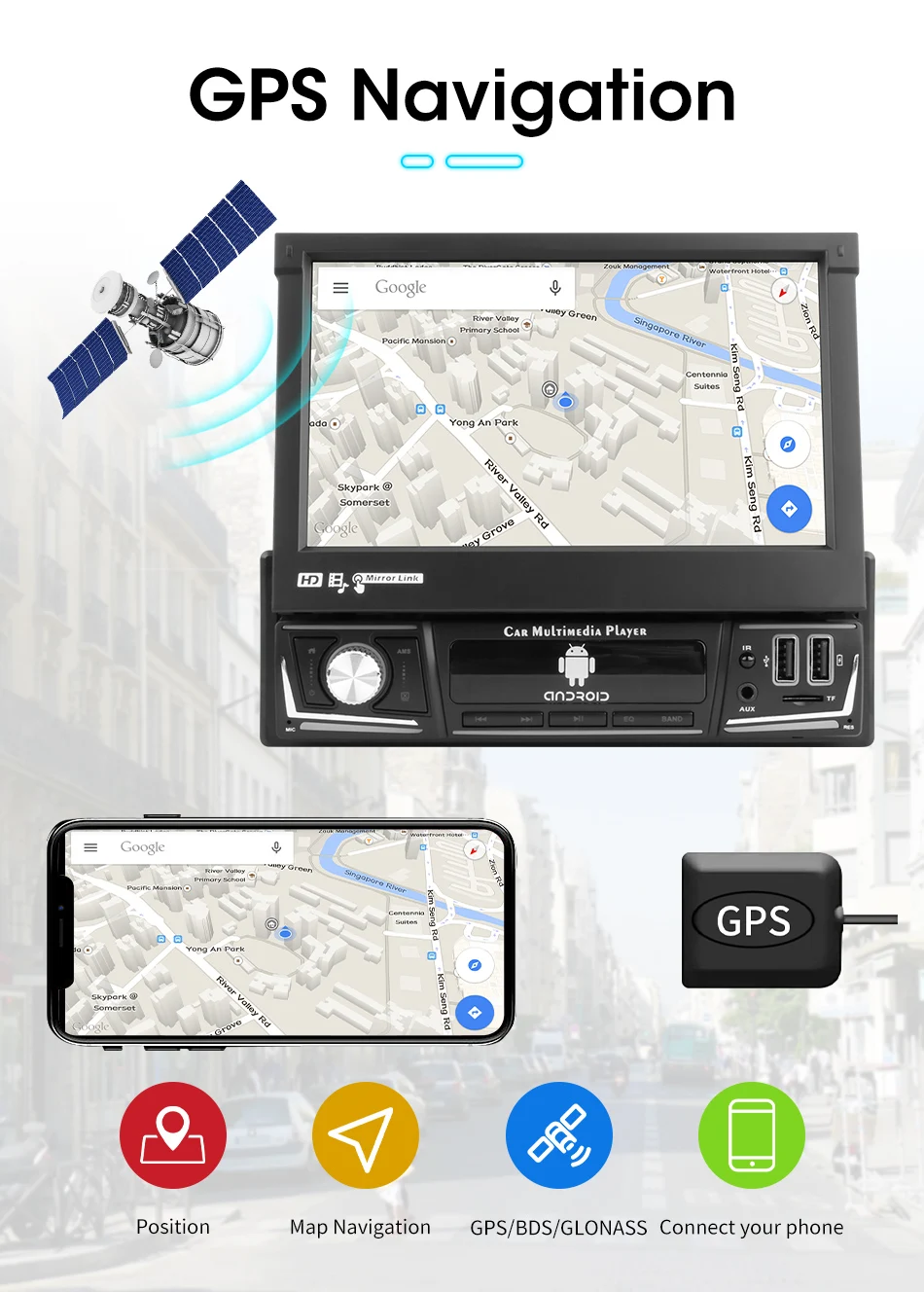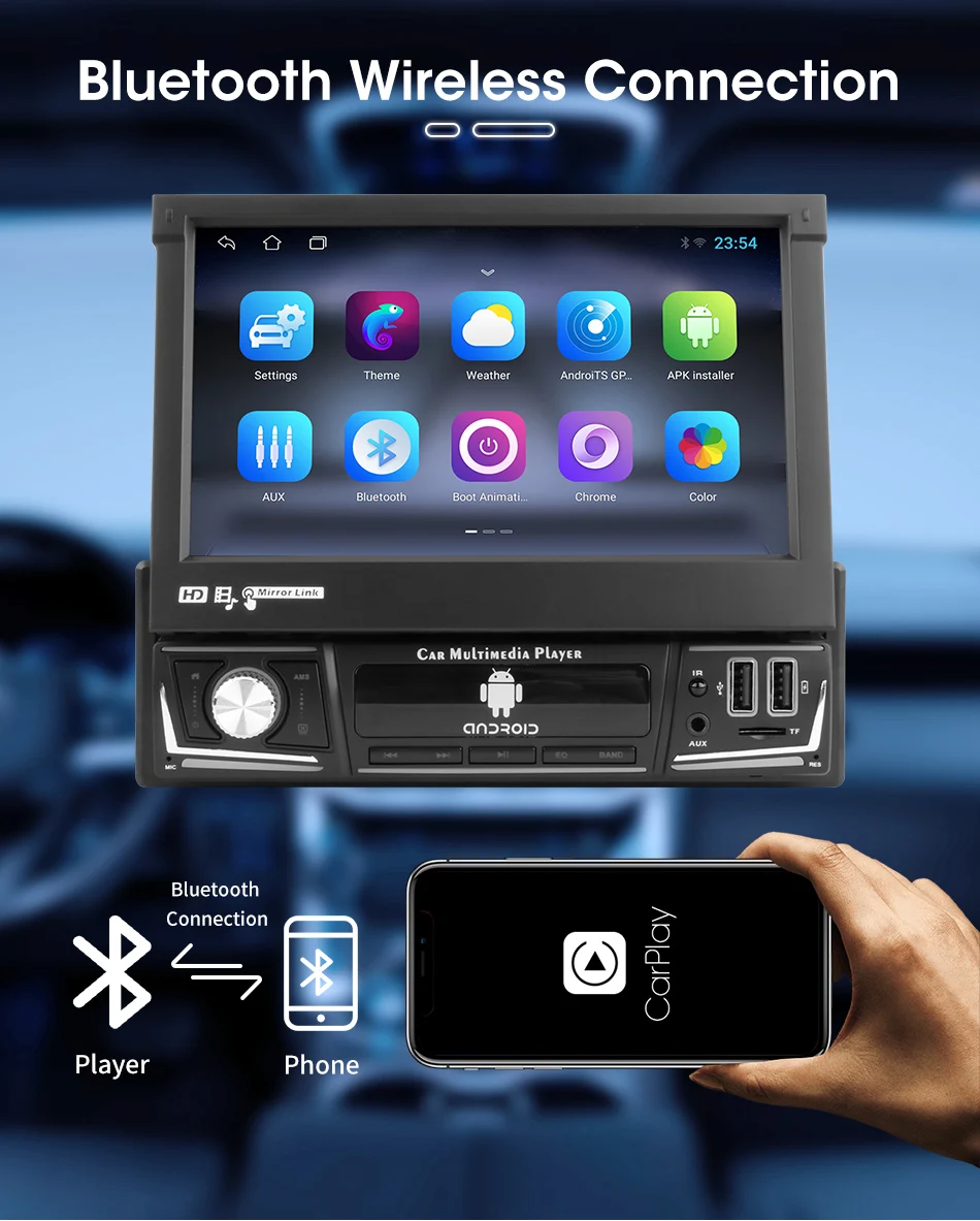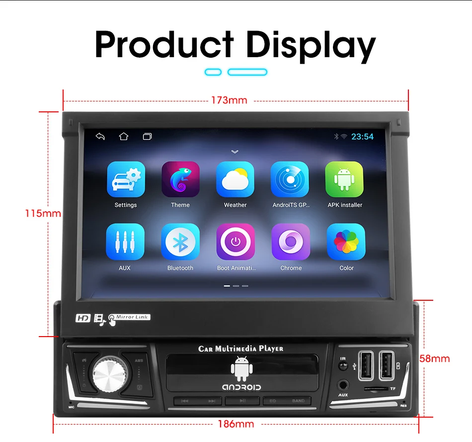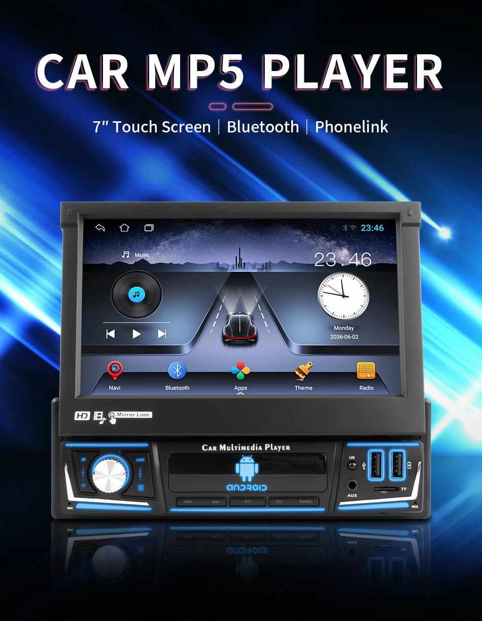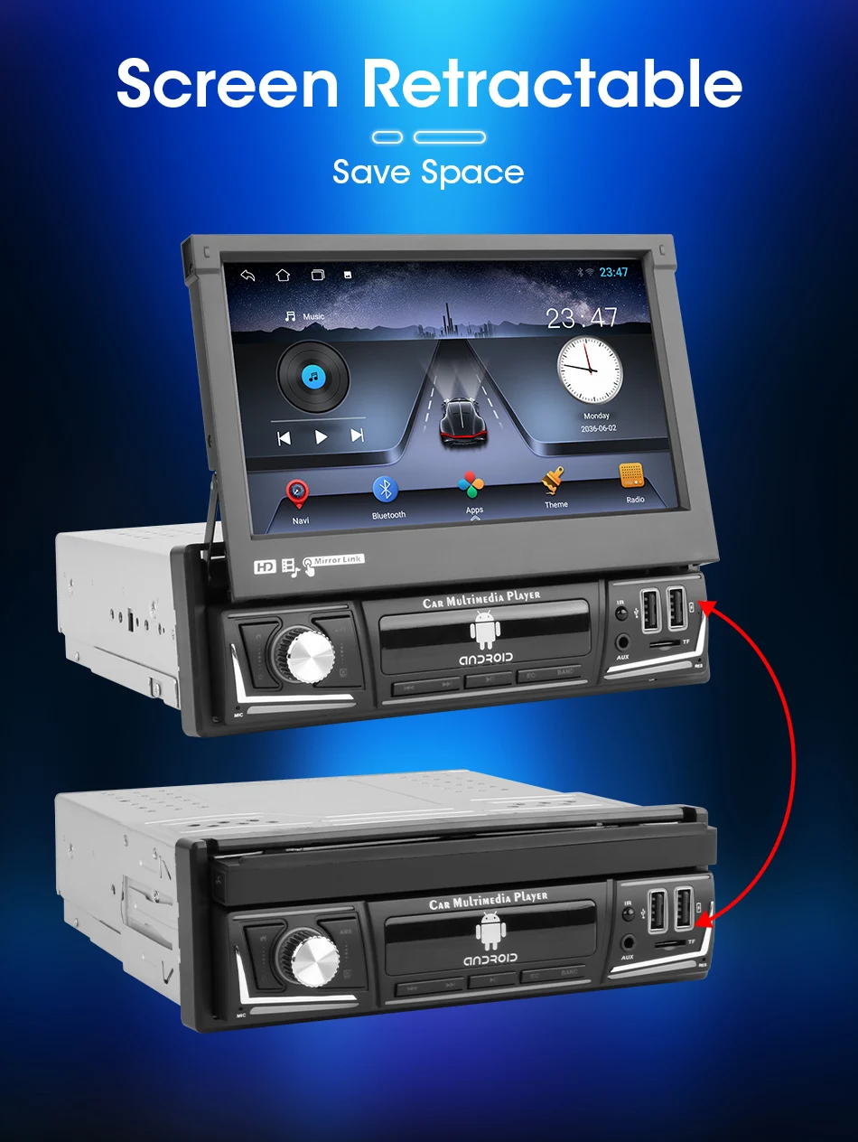أندرويد 11 شاشة قابلة للسحب للسيارة ، راديو سيارة ستيريو ، نظام تحديد المواقع والملاحة ، مشغل فيديو متعدد الوسائط ، دي في دي IPS صوت عالمي ، 1 دين ، 7 بوصة