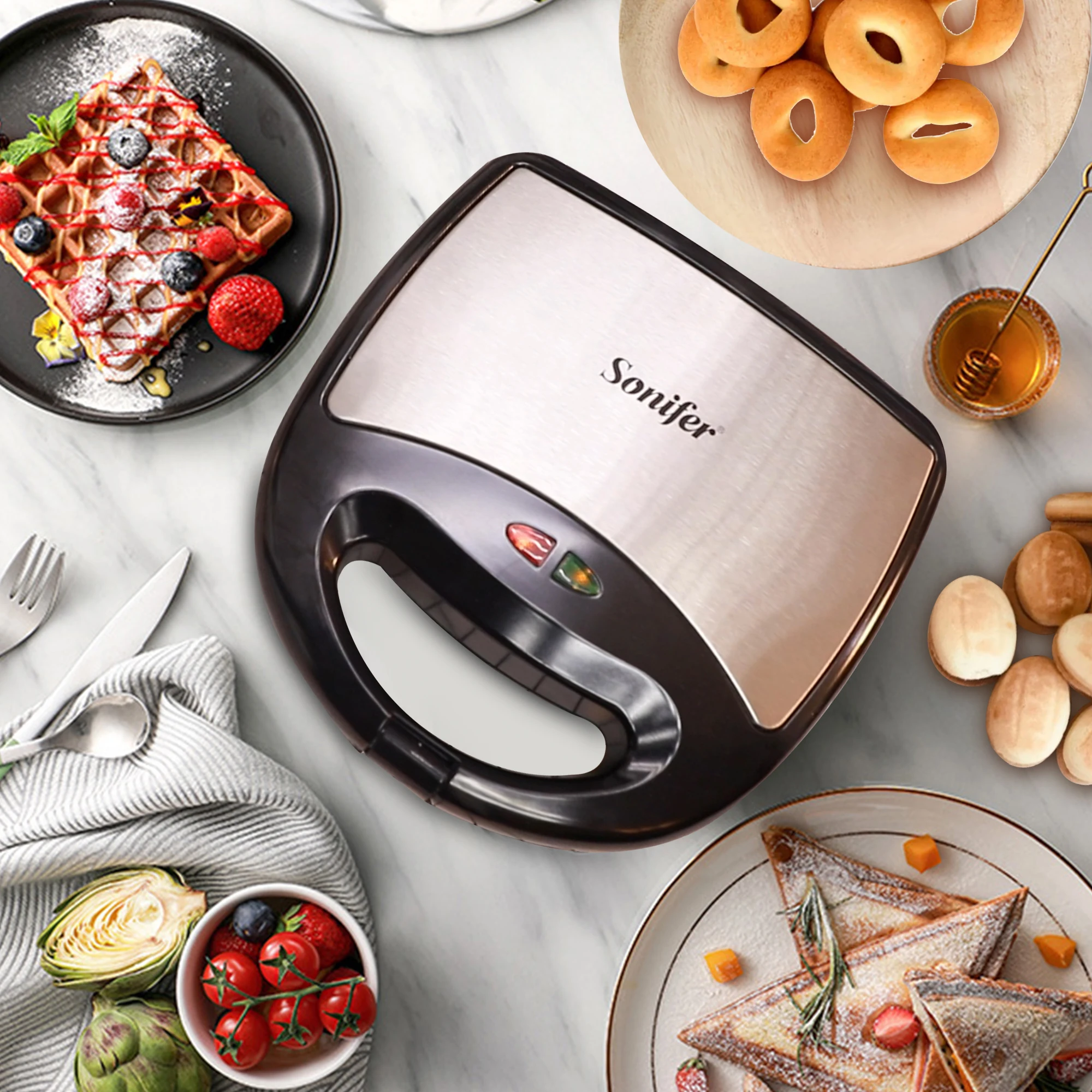 3 في 1 الكهربائية صانع الهراء أجهزة مطبخ الطبخ كبيرة مع 3 لوحات للإزالة آلة الإفطار الوافل وعاء الحديد Sonifer