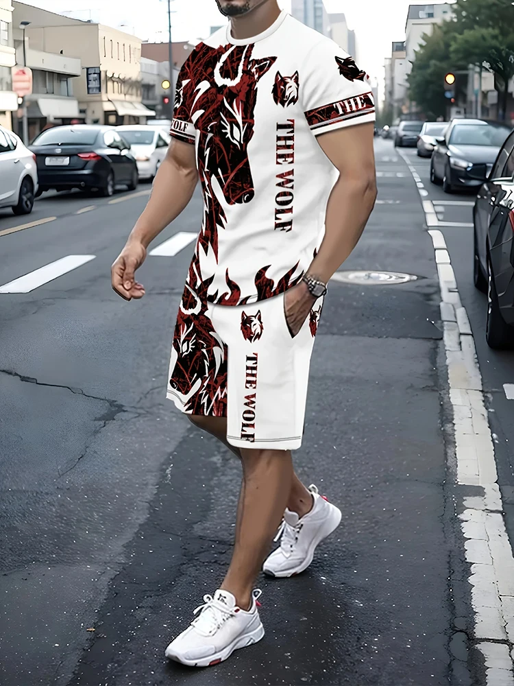 بدلة رجالية ثلاثية الأبعاد بطباعة ذئب ، تي شيرت عصري للشارع الحضري ، رياضة خارجية ، شورت شاطئ ، كاجوال يومي ، صيف