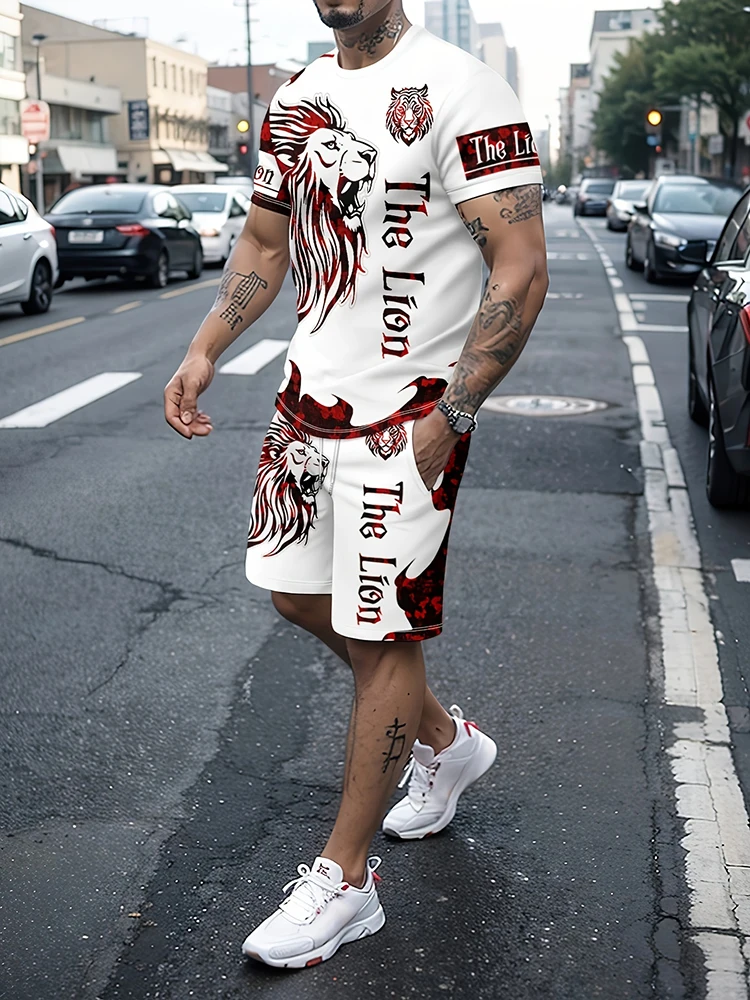 بدلة رياضية للرجال ثلاثية الأبعاد بطبعة الطوطم ، تي شيرت غير رسمي وشورت ، مجموعة ملابس كبيرة الحجم ، ملابس صيفية للحيوانات ، موضة ، 2 * *
