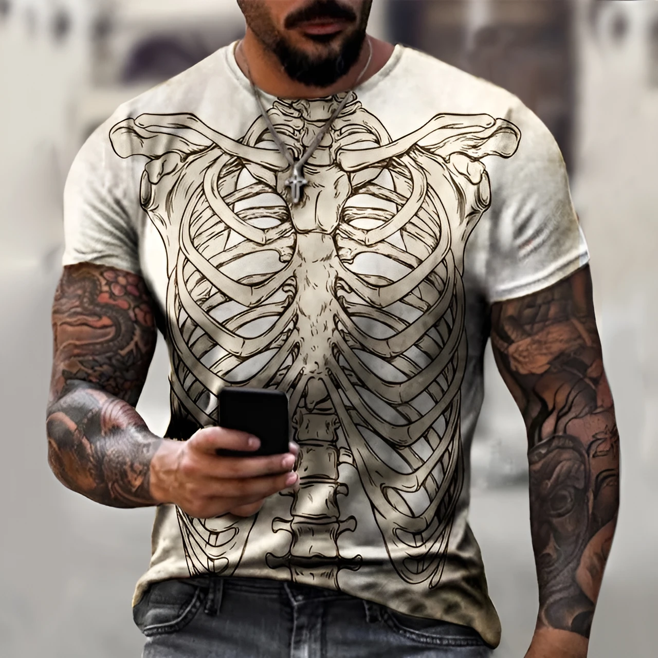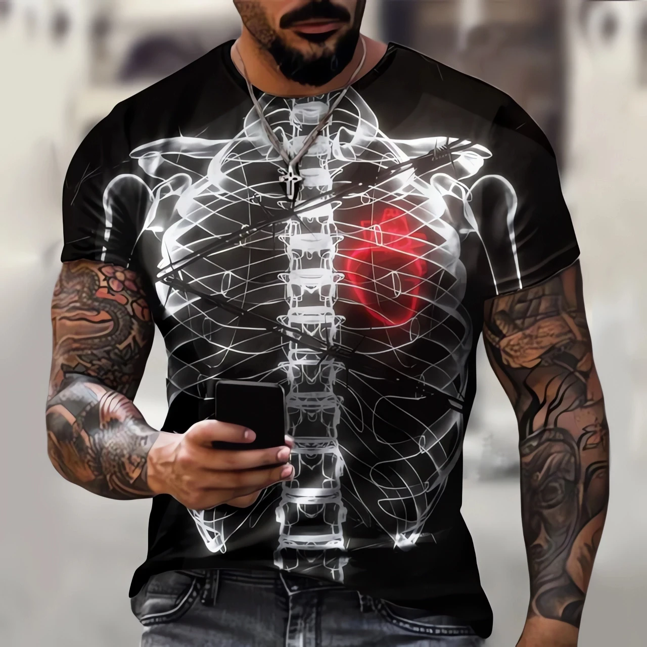تي شيرت رجالي رعب مطبوع ثلاثي الأبعاد ، تي شيرت غير رسمي كبير الحجم ، جديد