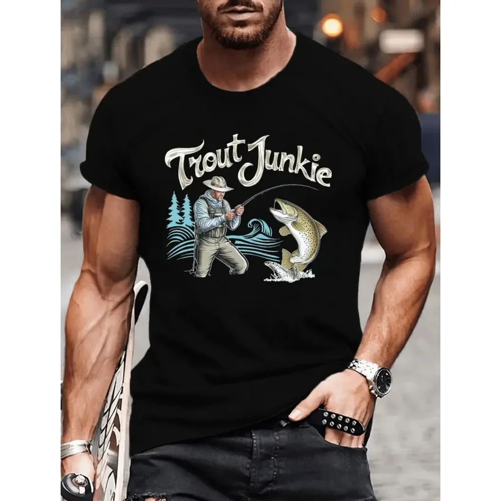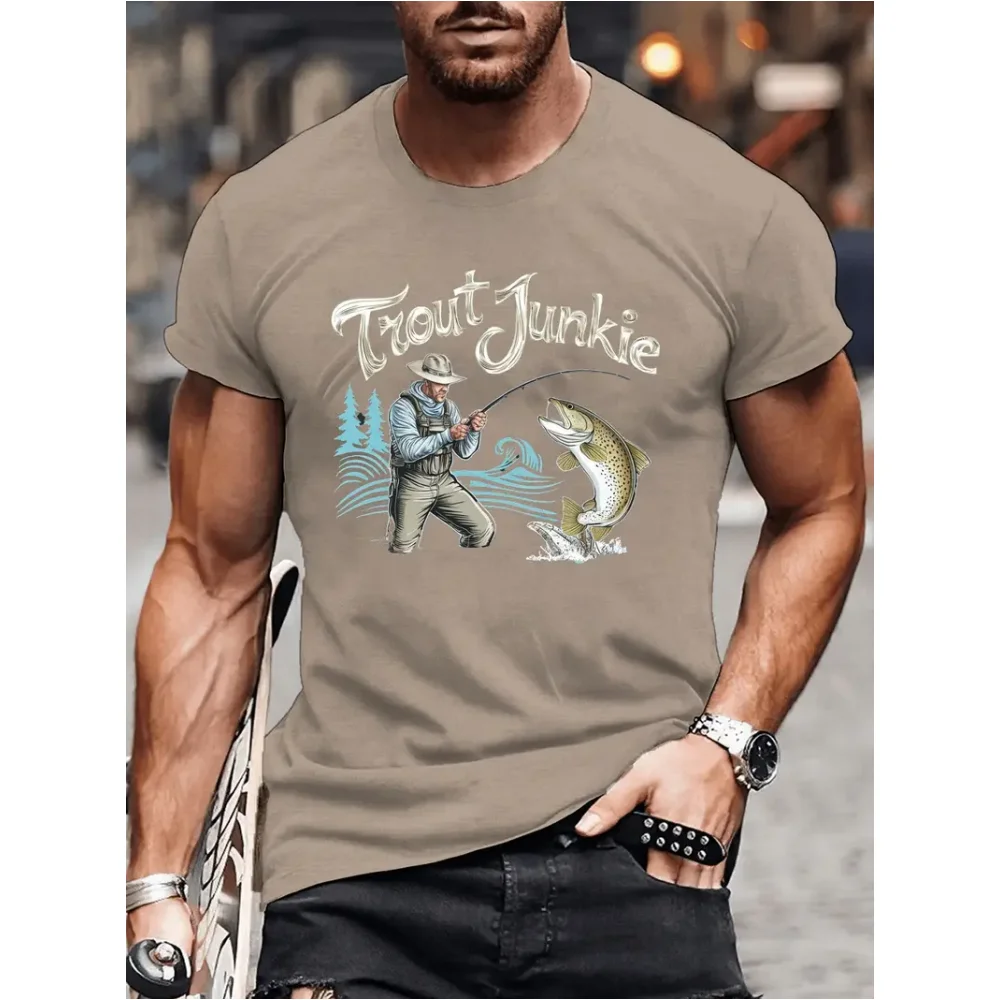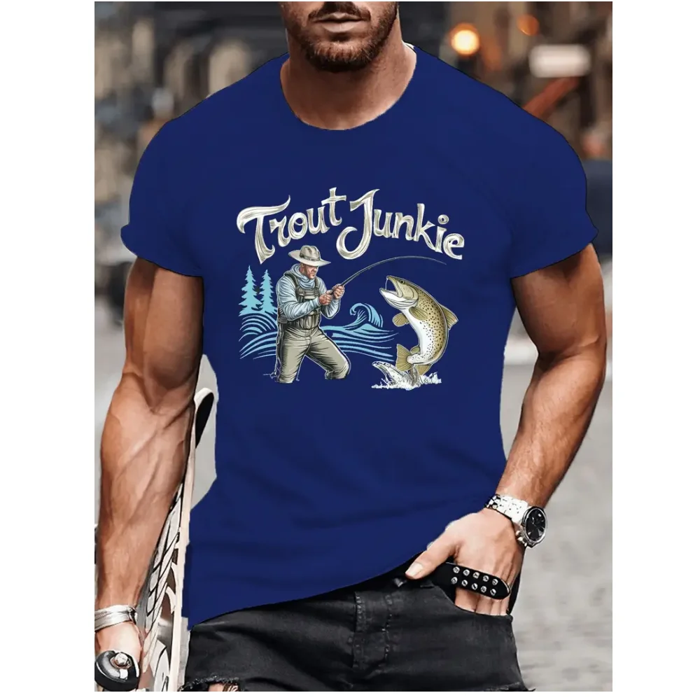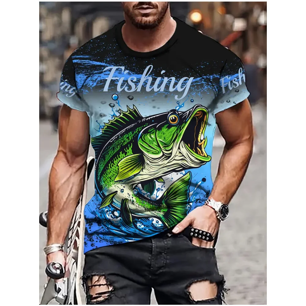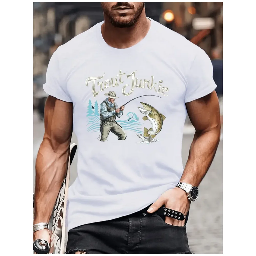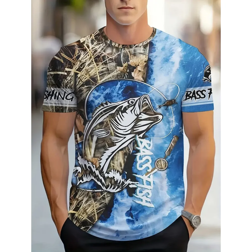 تي شيرت رجالي غير رسمي بنمط صيد الأسماك ، ملابس تجفيف سريعة التهوية ، تيشيرتات بأكمام قصيرة ، موضة رياضية ، جديدة ، صيفية ، Y2K