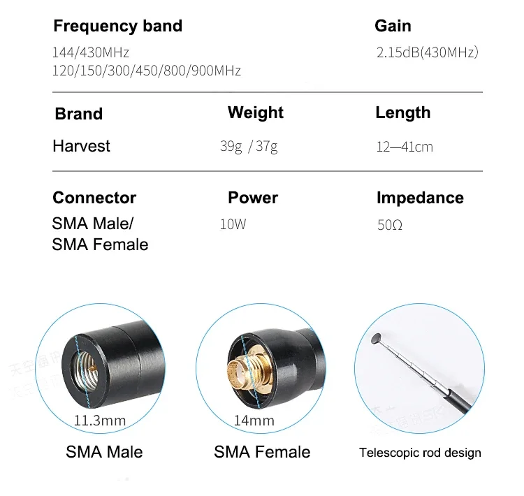 - Connector: SMA Male/Female
