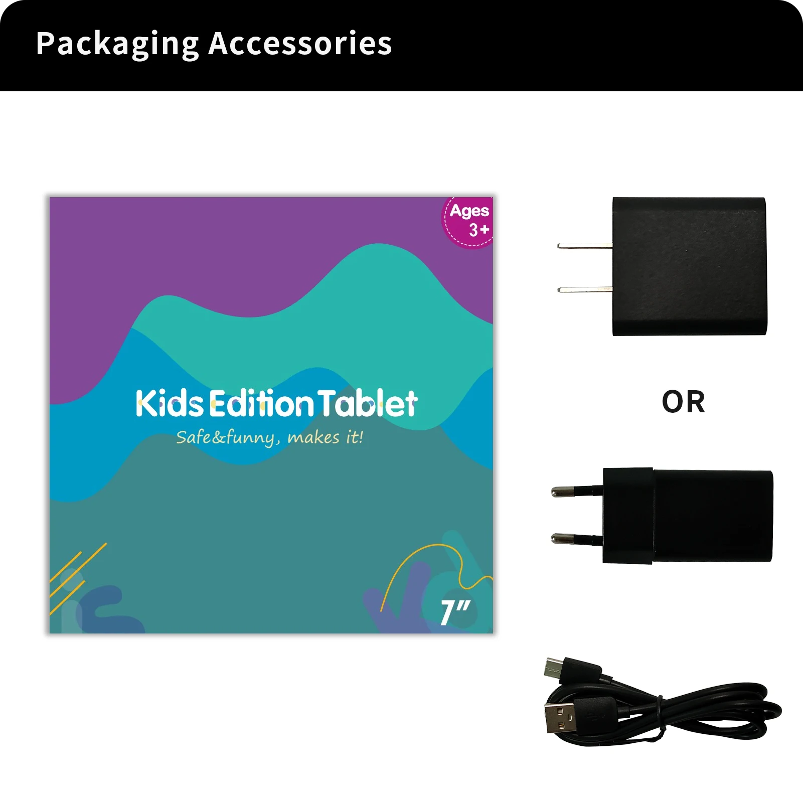كمبيوتر لوحي للأطفال 1 × 7 بوصة مع حافظة واقية من السيليكون/شاحن 1x/كابل 1x/دليل مستخدم 1x