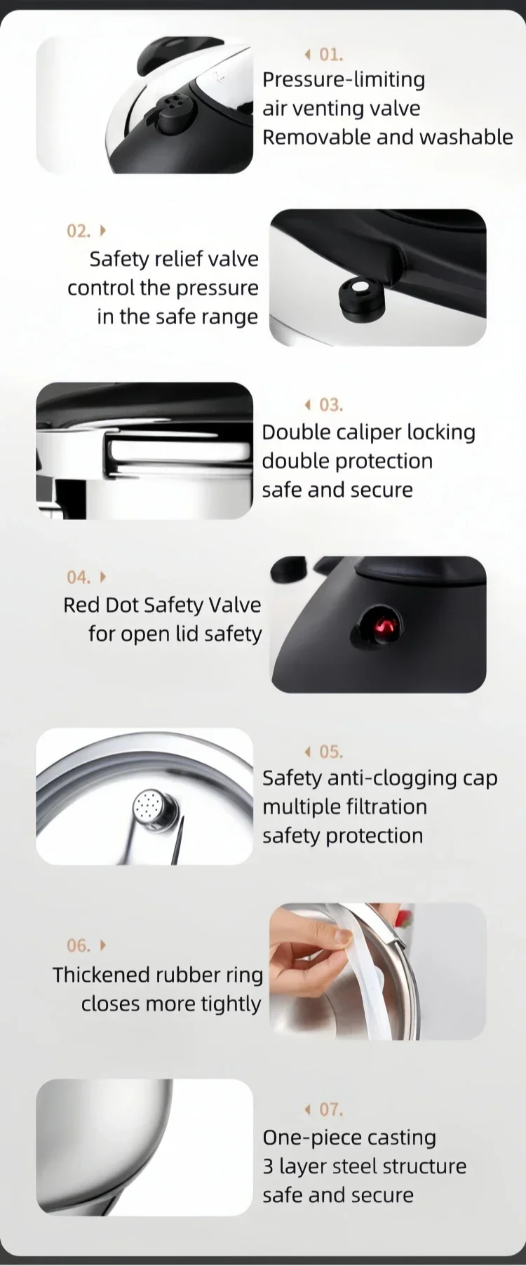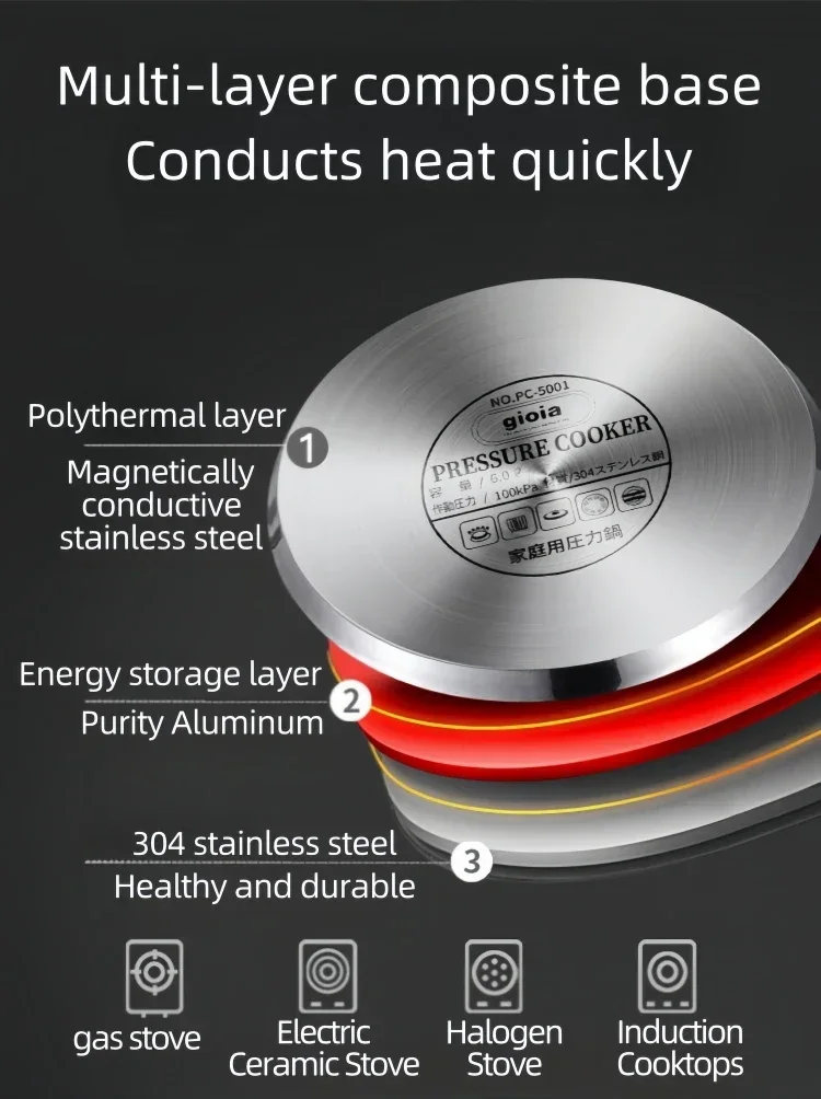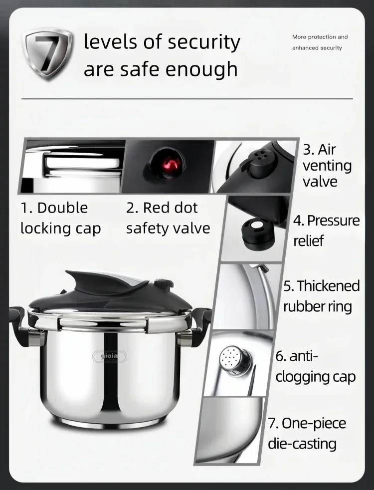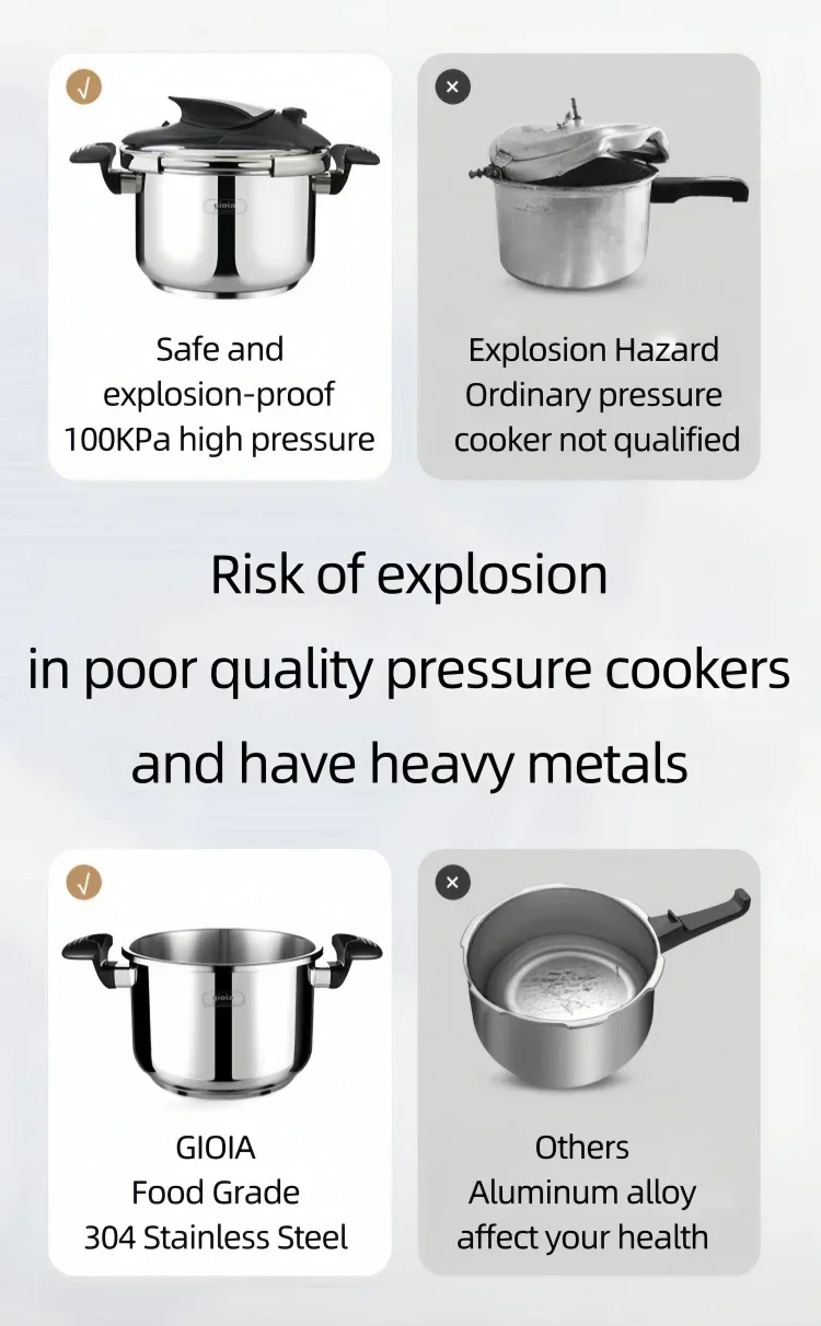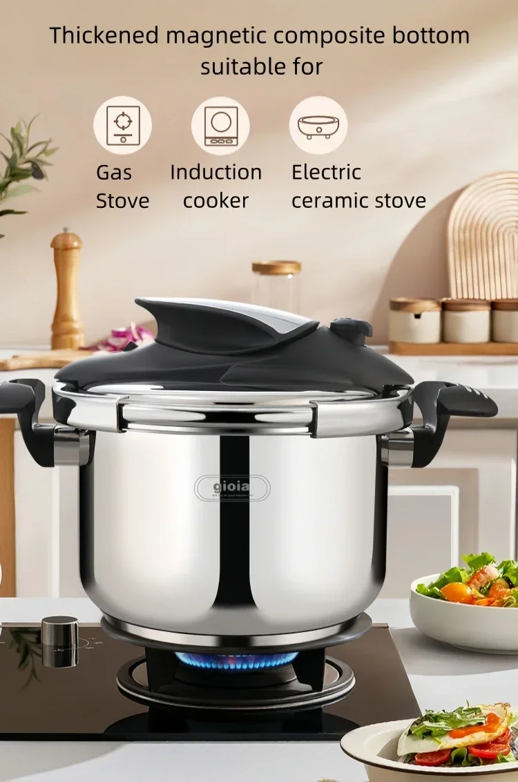 طنجرة ضغط Gioia 100kpa 6L متعددة الوظائف صلب مقاوم للانفجار للاستخدام العام لطباخ الغاز والحث