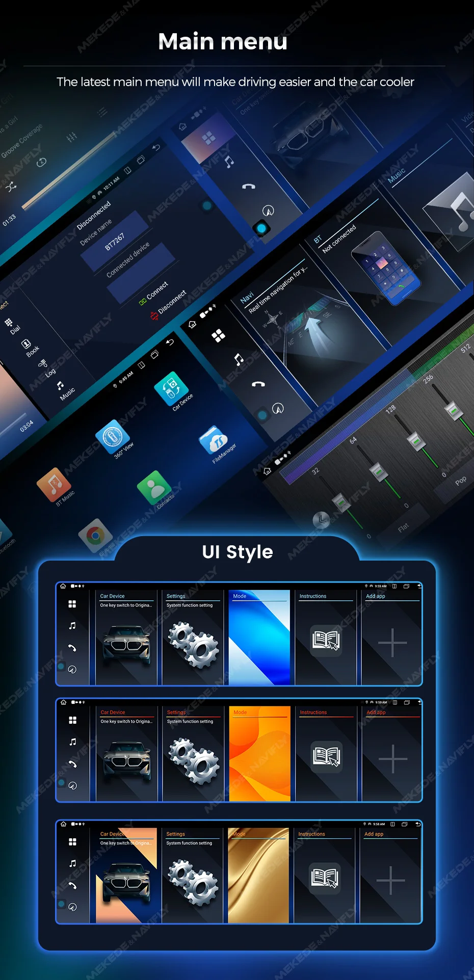- Special Features: Gps مدمج,الشاحن,Mobile Phone,MP3 Players,التحكم الصوتي,DSP,Carplay,الروبوت السيارات,عكس المدخلات,تقسيم الشاشة