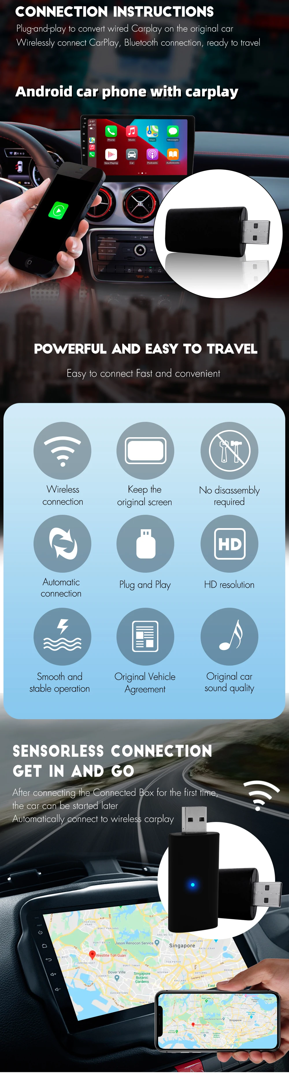 قم بتغيير طريقة اتصال السيارة السلكية الأصلية ، قل وداعًا لاتصال البيانات ، ويجلب الإرسال اللاسلكي تجربة اتصال أكثر ملاءمة. عند استخدام سيارة أبل ، سيتم الاتصال تلقائيًا عند دخول قمرة القيادة.