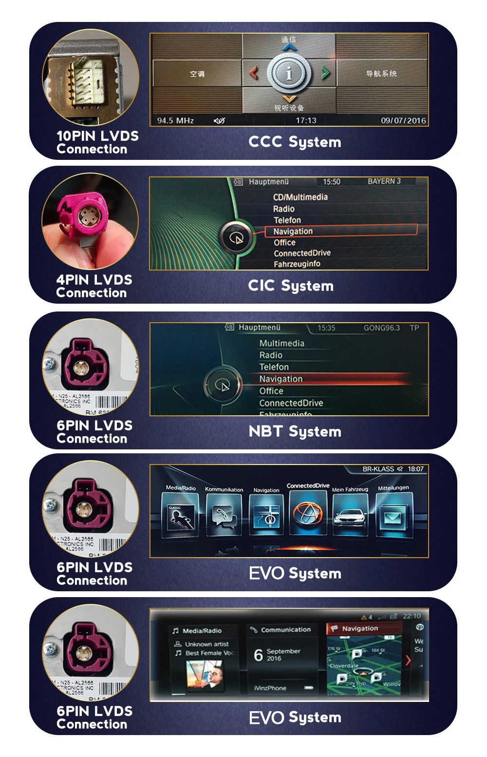 - Special Features: Gps مدمج,الشاحن,Mobile Phone,MP3 Players,التحكم الصوتي,DSP,Carplay,الروبوت السيارات,عكس المدخلات,تقسيم الشاشة