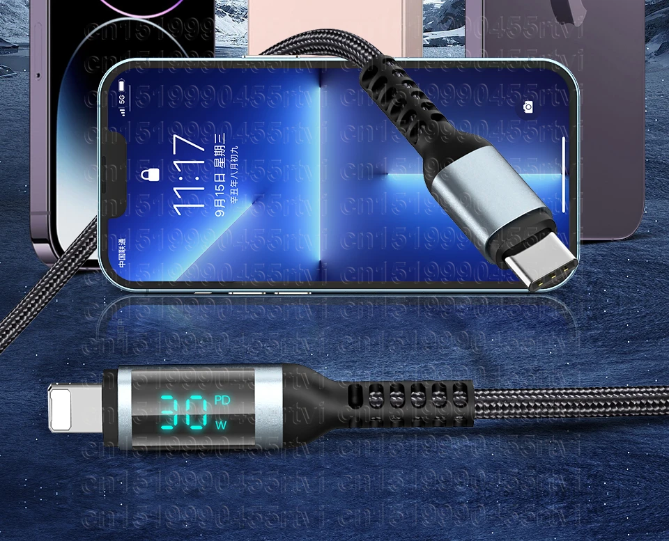 PD30W USB C إلى كابل الإضاءة لفون 14 13 12 11 Pro Max XS XR iPad شاشة LED شحن سريع نوع C إلى كابل بيانات الإضاءة