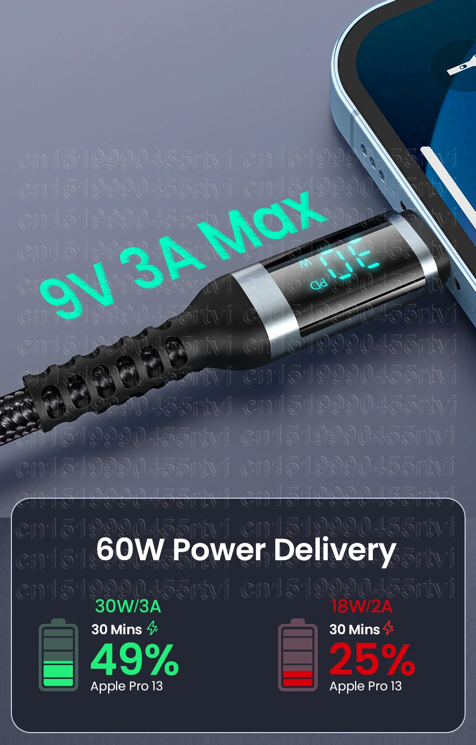 - الخصائص: سريع تهمة كابل