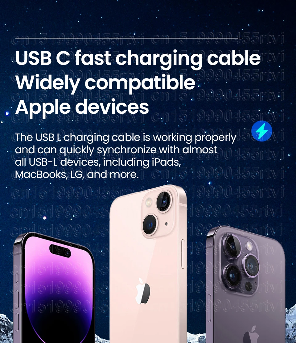 شحن سريع كابل بيانات من النوع C ، كابل إضاءة لهاتف آيفون 14 و 13 و 12 و 11 برو ماكس ، إكس إس ، إكس آر ، آي باد ، شاشة ليد ، PD 30 واط ، إضاءة