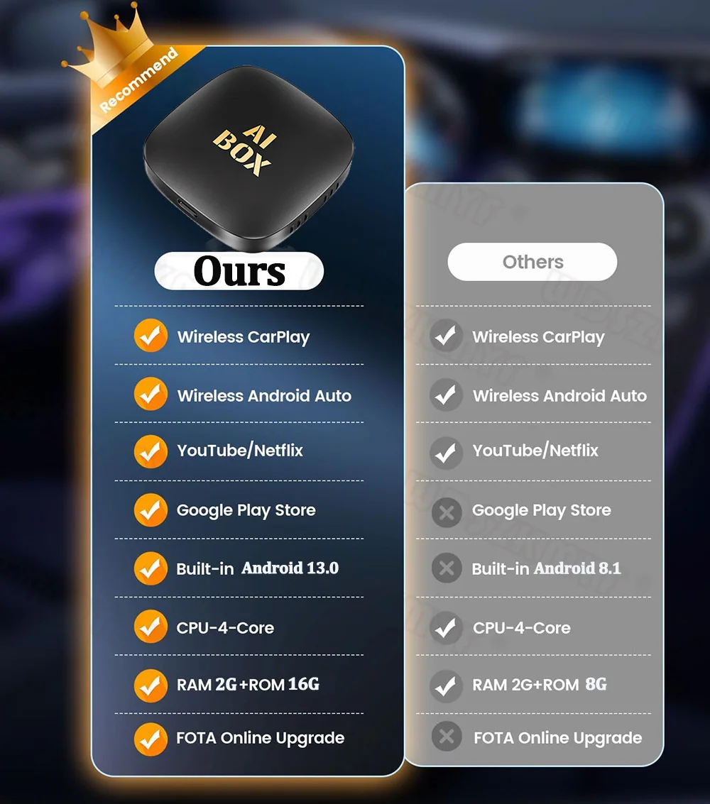 يضيف صندوق AI من Carplay نظام Android الذي يأتي مع تطبيقات ضخمة من متجر Play إلى سيارتك. (يدعم متجر Google Play)