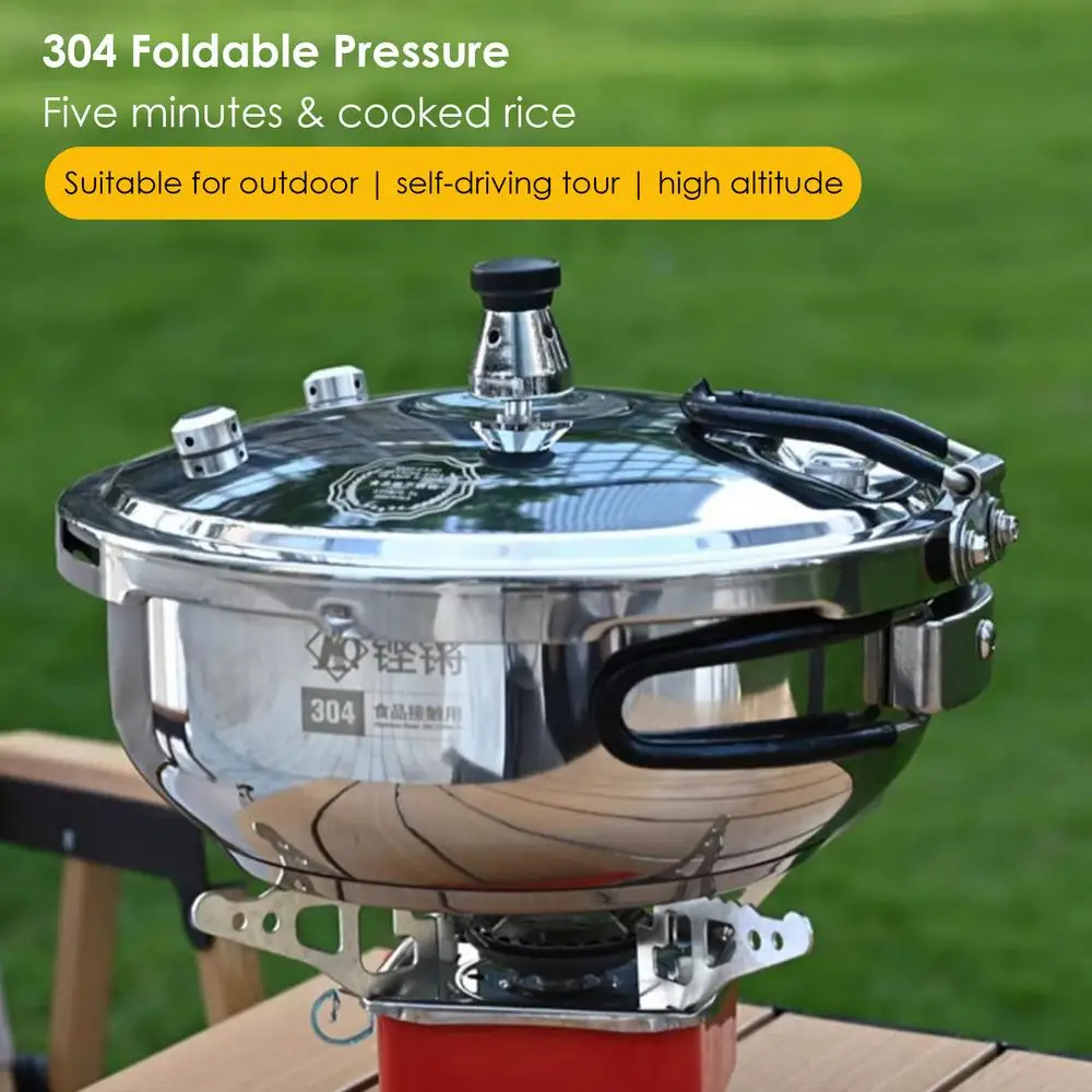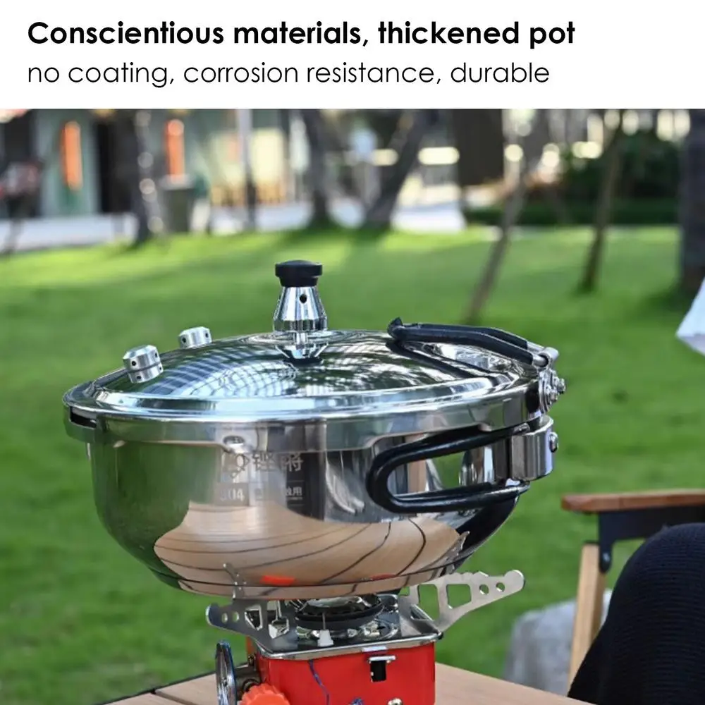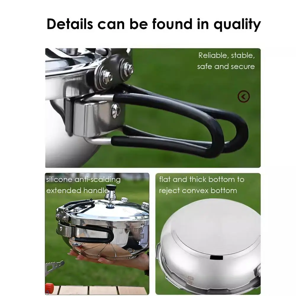 5. الطهي الفعال أثناء التنقل: استمتع بالطهي في الهواء الطلق مع طباخ الضغط غير المطلي هذا المصنوع من مادة مقاومة للصدأ. يضمن تصميمها السميك والعميق سعة كبيرة للطبخ الخارجي دون عناء. المقبض القابل للطي يجعل من السهل حمله وتخزينه.