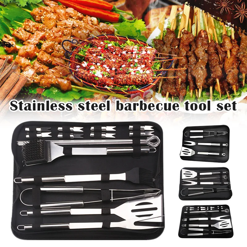 طقم أدوات للشواء من الفولاذ المقاوم للصدأ ، أواني شواء ، ملعقة ، ملقط شوكة ، فرشاة سكين ، أسياخ للتخييم ، في الهواء الطلق ، 3 ، 9 ، 20 * * *