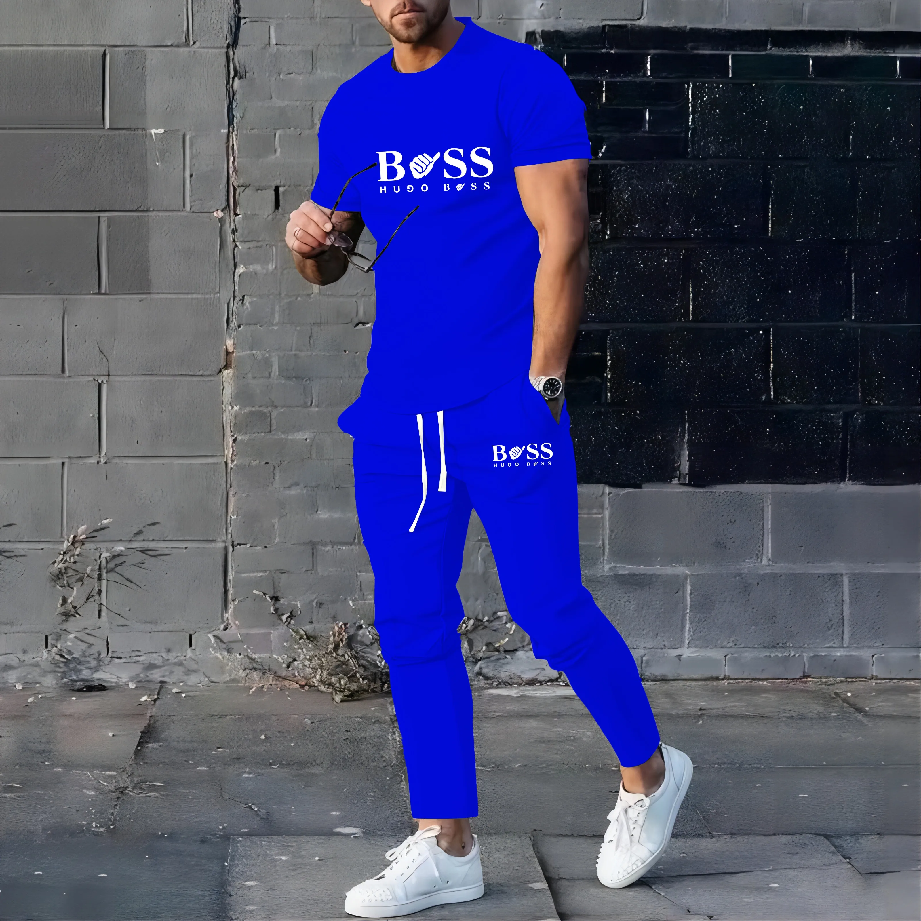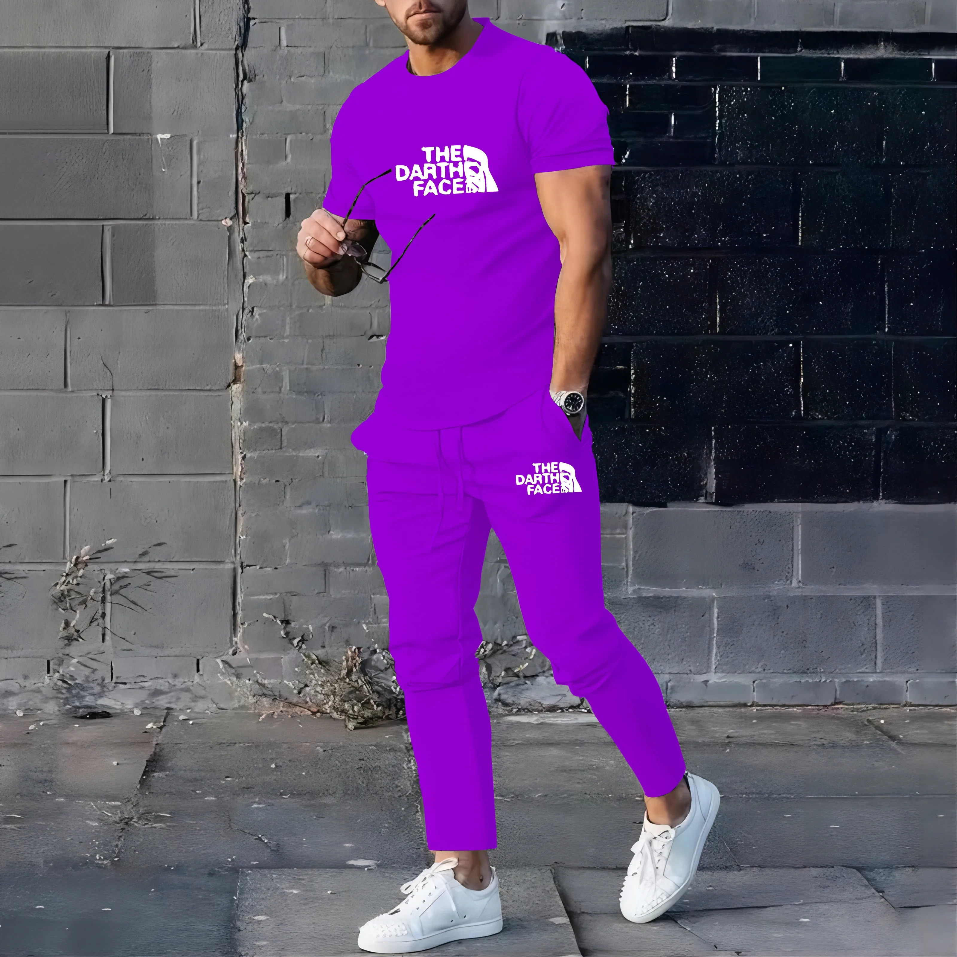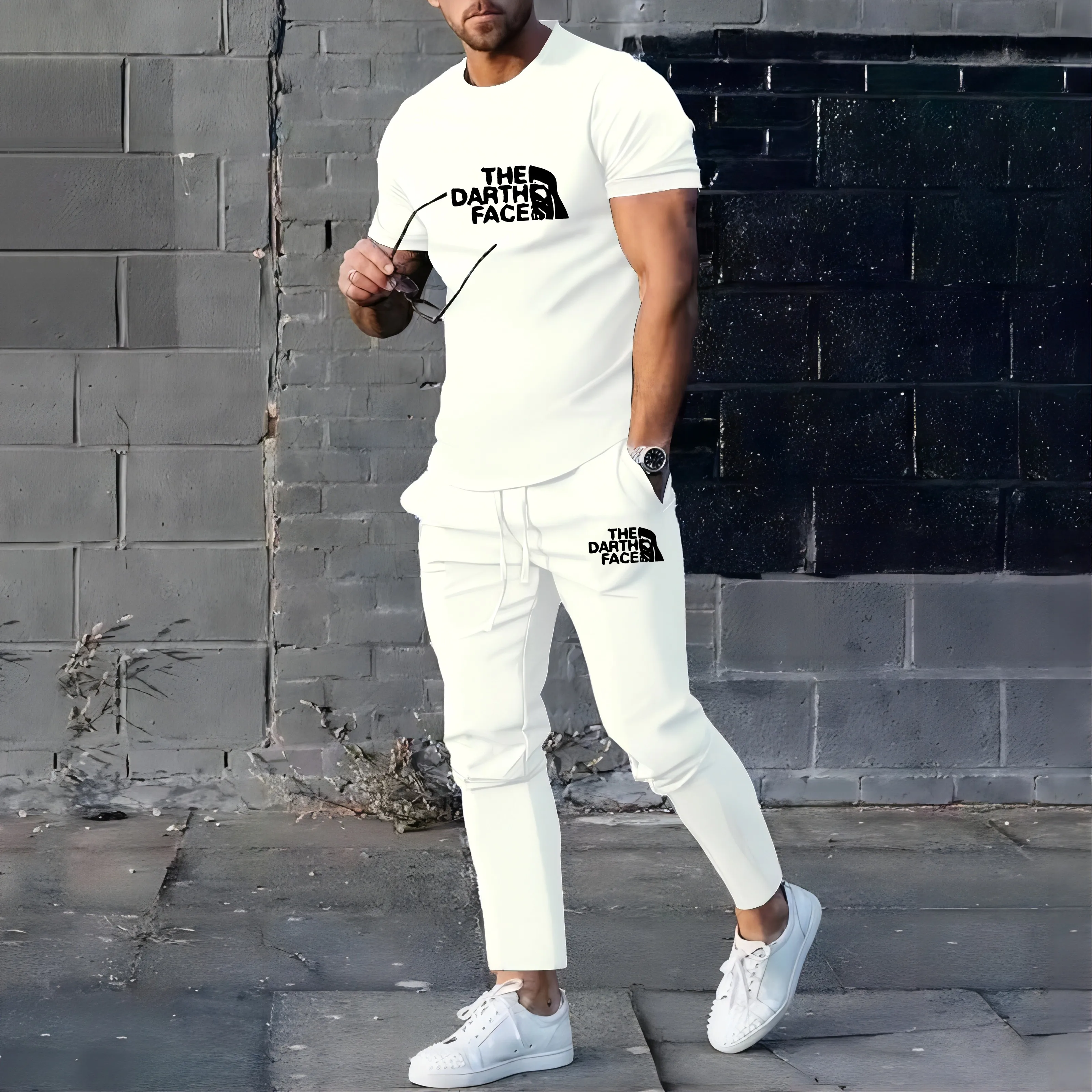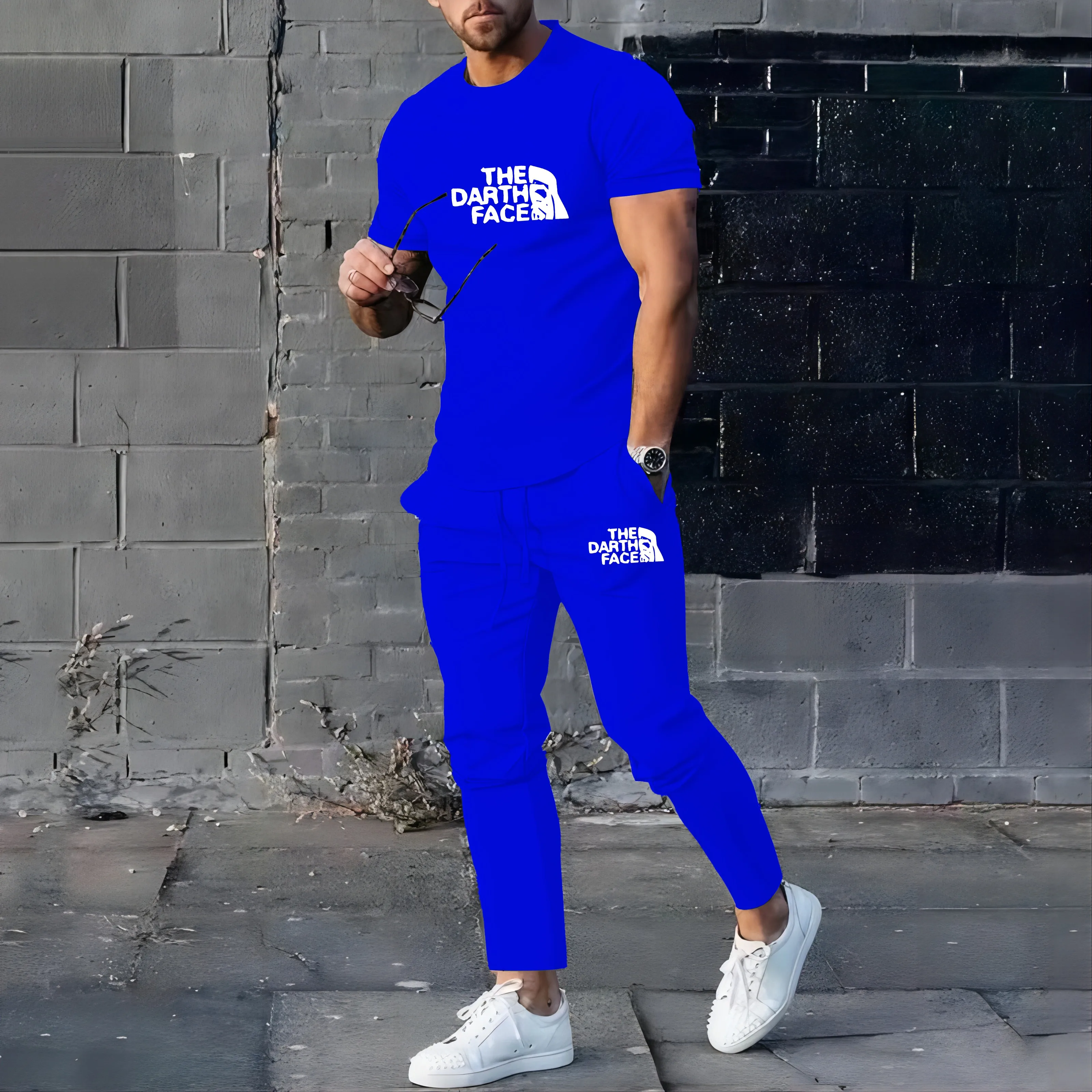 طقم تيشيرت وسراويل رياضية بأكمام قصيرة للرجال ، ملابس رياضية ، بدلة ركض غير رسمية ، تدريب ، جديد ، صيف ، 2, أو أو
