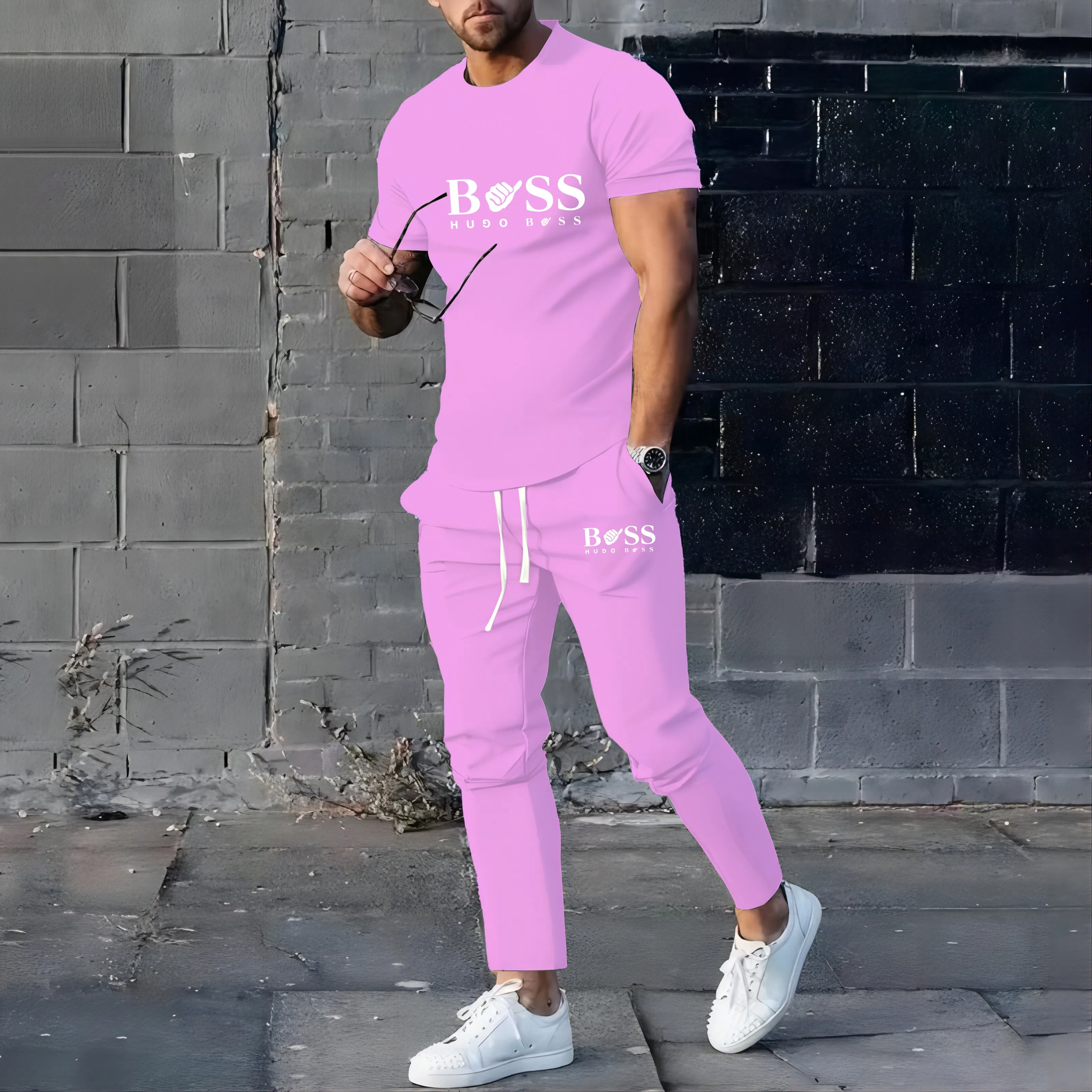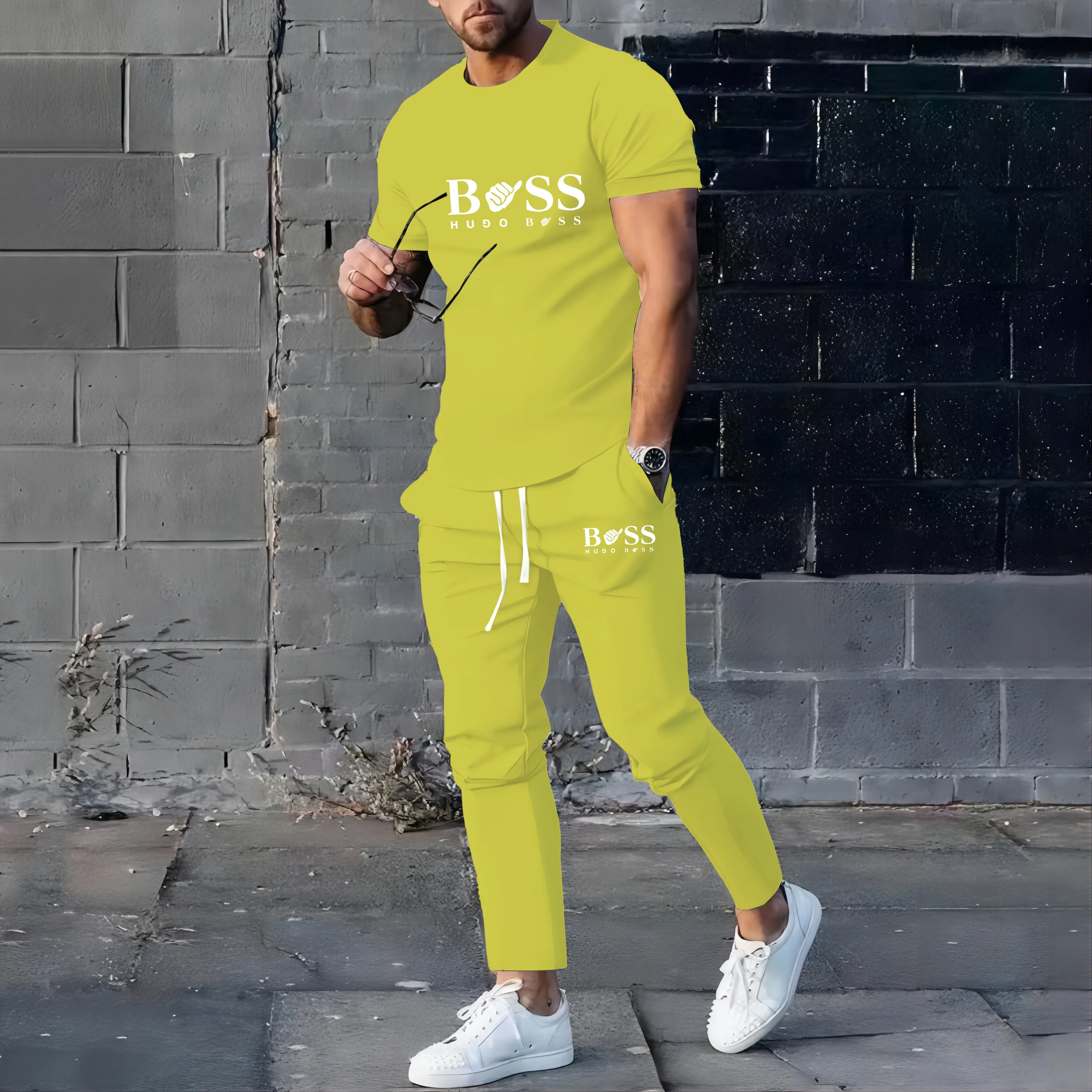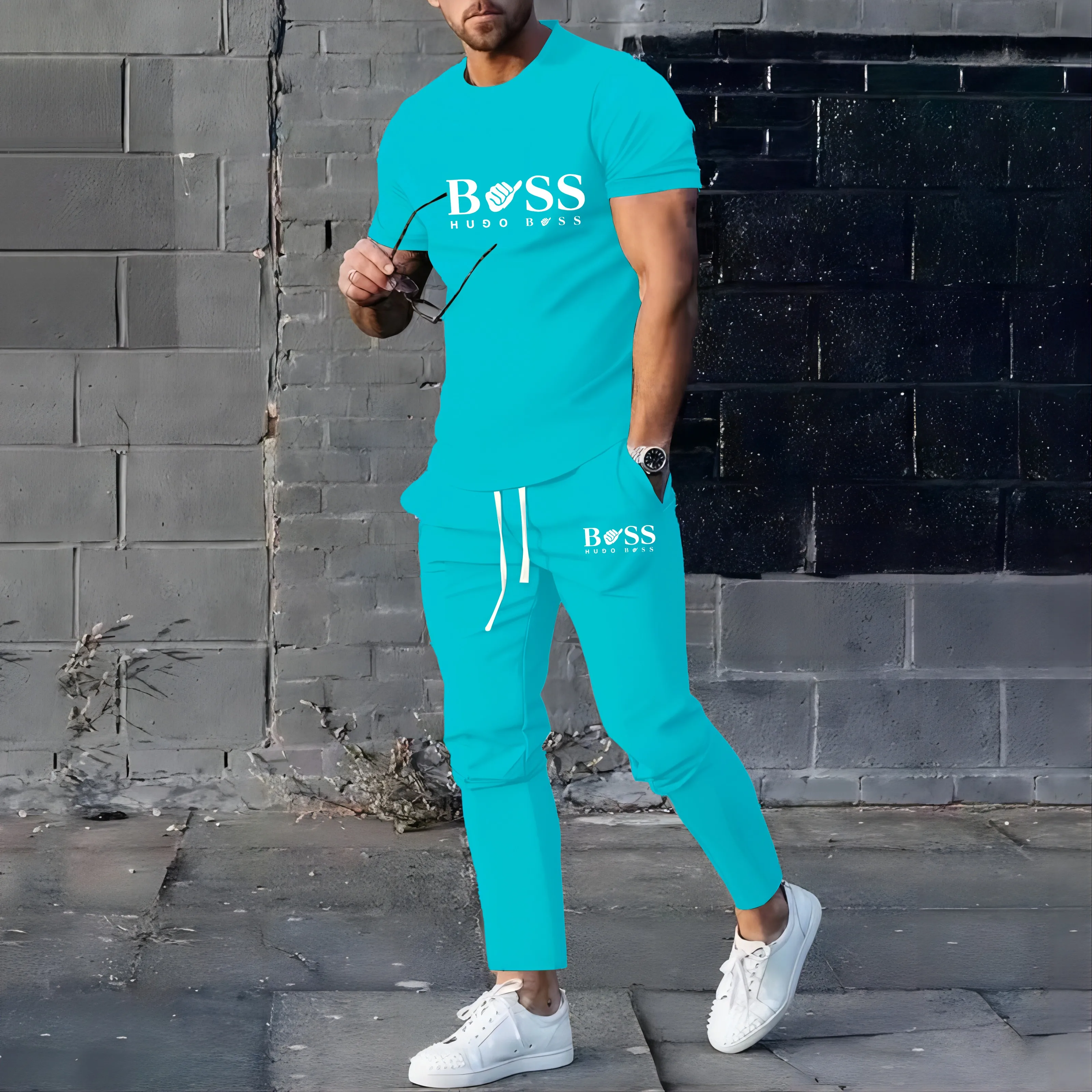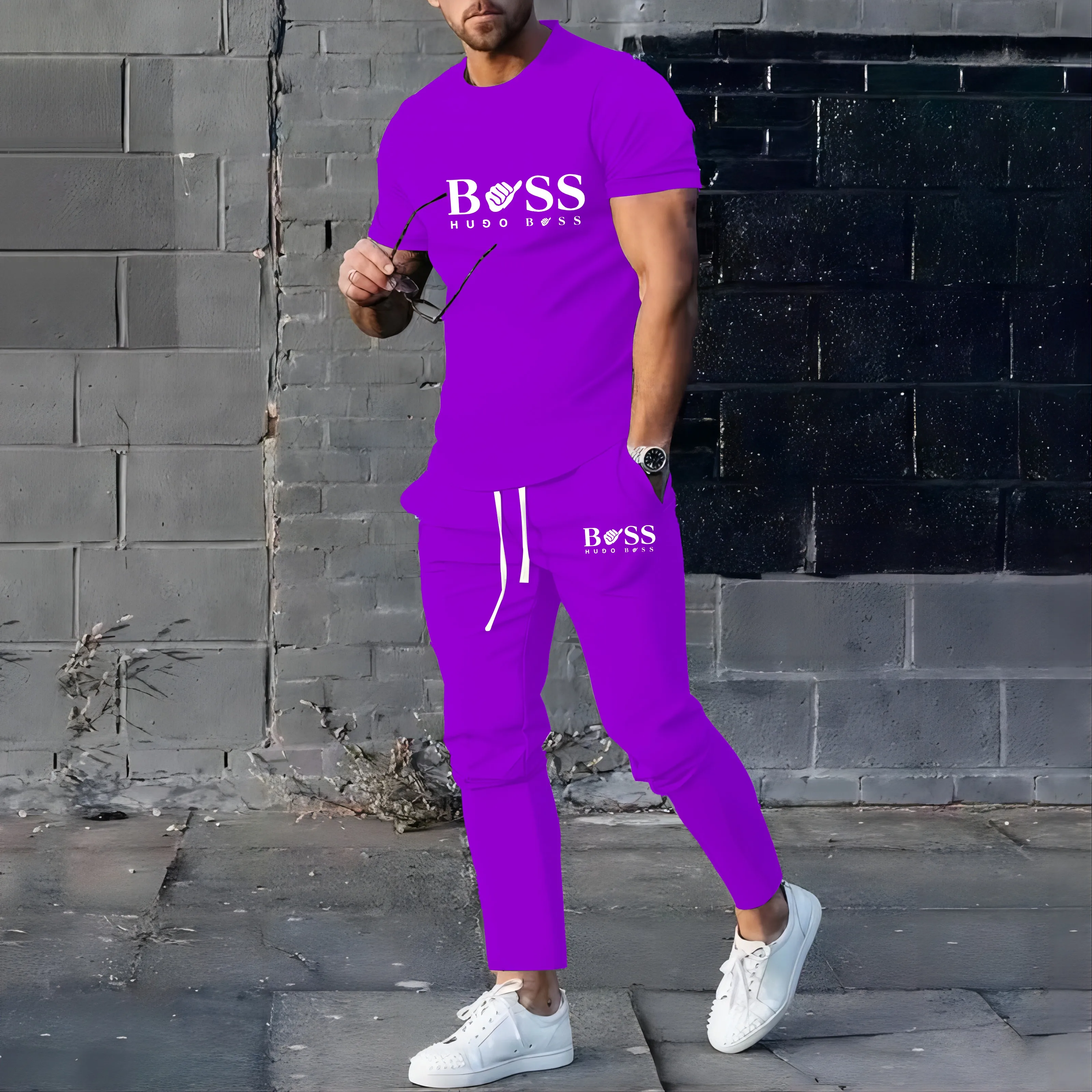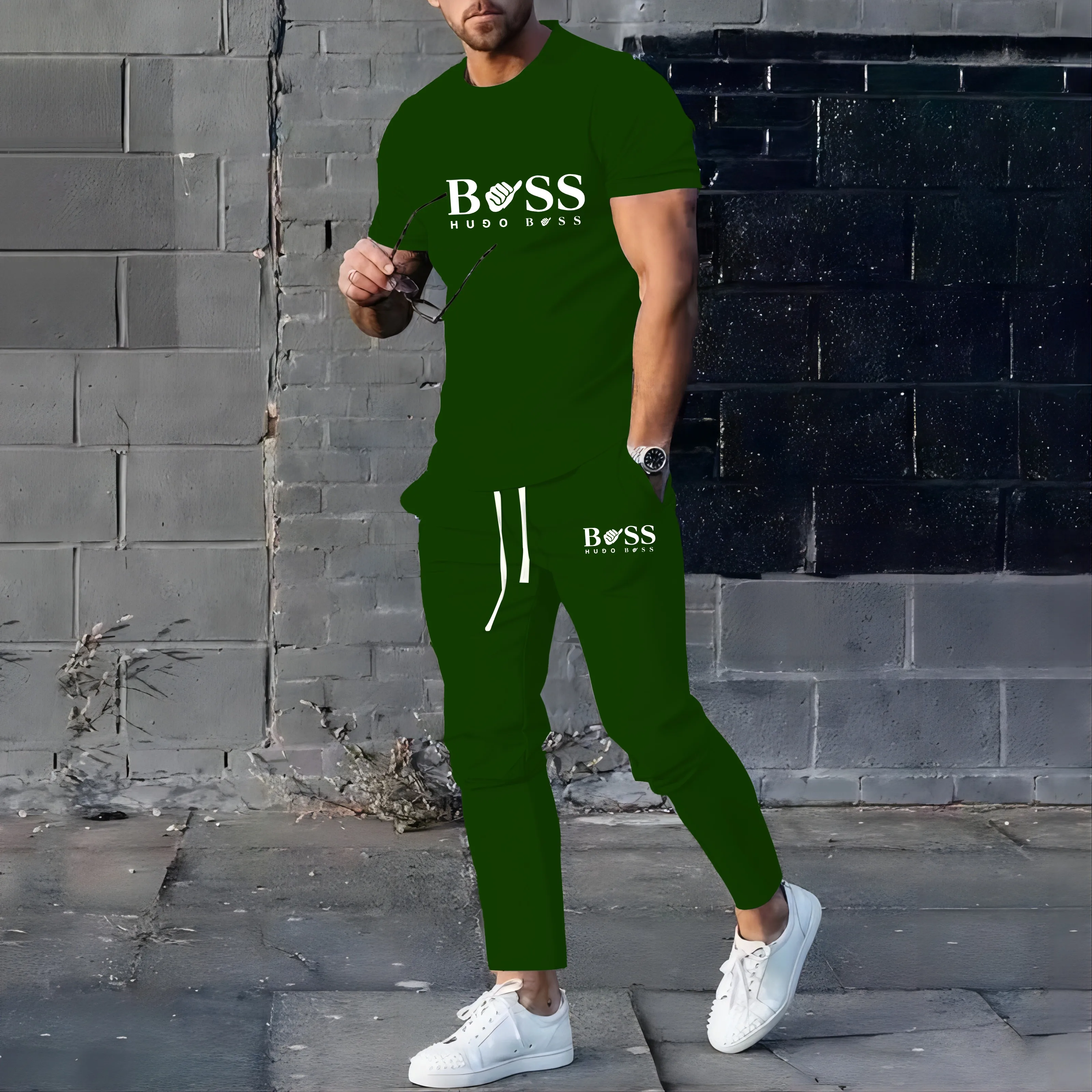 طقم تيشيرت وسراويل رياضية بأكمام قصيرة للرجال ، ملابس رياضية ، بدلة ركض غير رسمية ، تدريب ، جديد ، صيف ، 2, أو أو