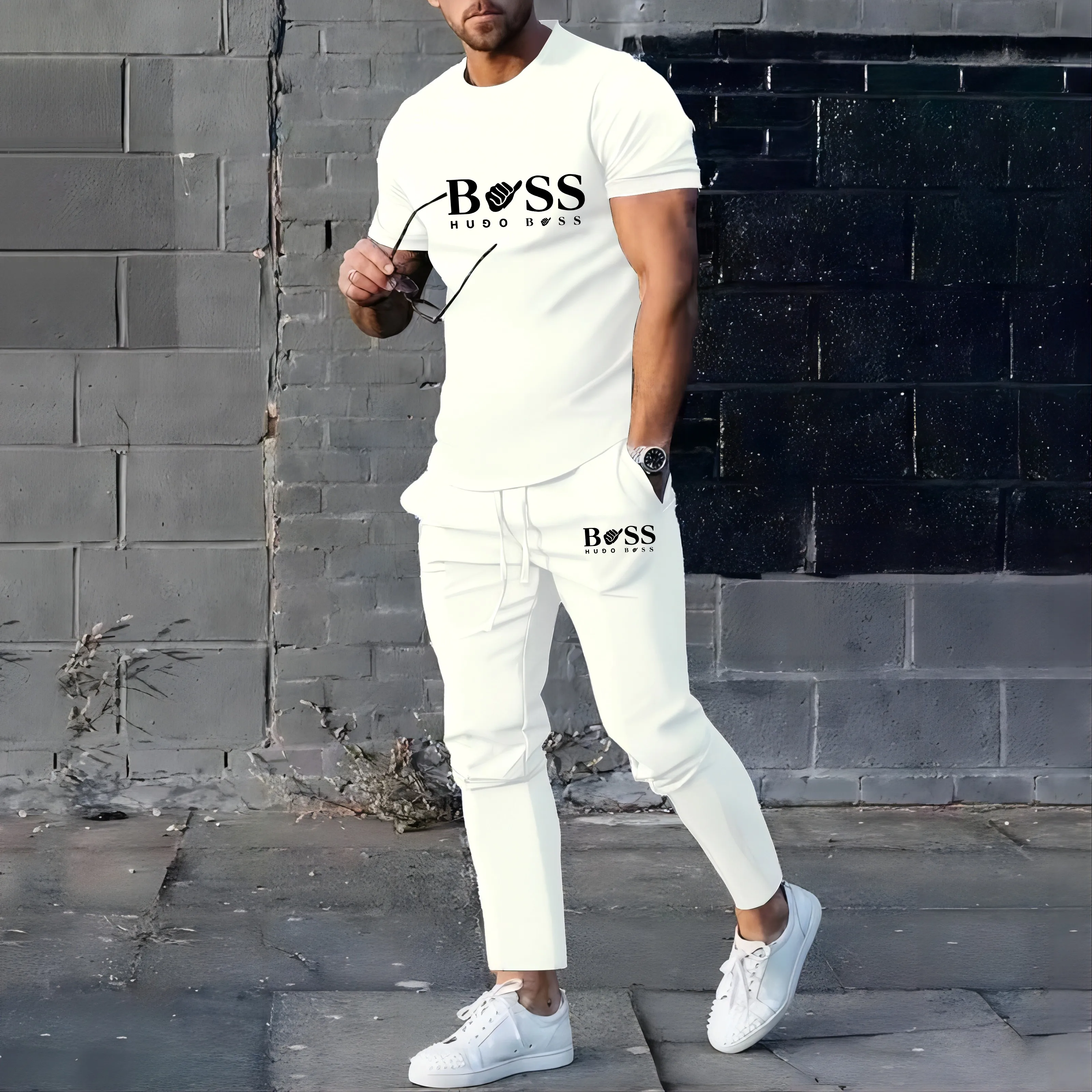 بدلة رياضية للرجال من قطعتين ، تيشيرت وشورت ، ملابس غير رسمية ، قطن ، موضة جديدة ، الصيف ، أو