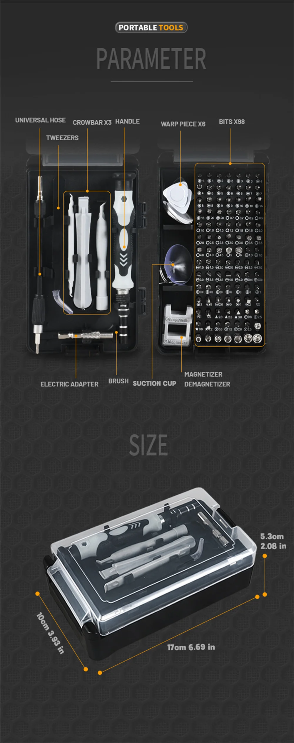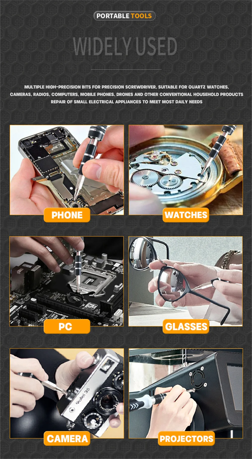 【 اختر دائمًا مجموعة مفك البراغي الدقيقة في 1 هي مجموعة أدوات إصلاح الإلكترونيات الأكثر أصلية وكلاسيكية ، تحتوي على 98 رأس مفك براغي و 17 إكسسوارات. يغطي مفك البراغي الإلكتروني المتعدد بشكل أساسي جميع أدوات الإلكترونيات والإصلاحات الصغيرة-وهو مثالي لأجهزة الكمبيوتر المحمولة والهواتف وأجهزة الكمبيوتر والمجوهرات والنظارات ووحدات التحكم في الألعاب والطائرات بدون طيار وغيرها من الأجهزة الإلكترونية.