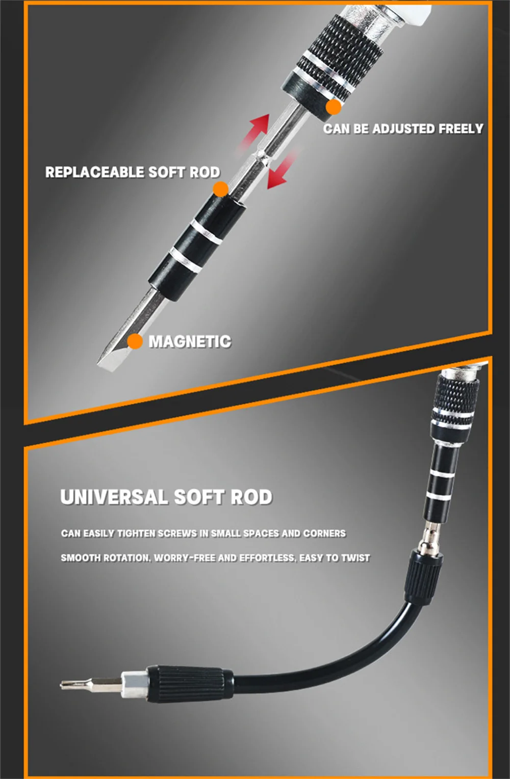 【 مواد موثوقة 】 هذا المفك المغناطيسي القابل للاستبدال مصنوع من فولاذ عالي الجودة ، والذي يتميز بقوة مذهلة ودقة وقوة التحمل دون إتلاف الأجهزة. تم تصميم كل بت باستخدام الآلاف من بيانات الإصلاح المكررة ويمر بعملية معالجة بدرجة حرارة عالية لضمان الاستقرار ومقاومة التجريد ، وضمان الاستخدام طويل الأمد.