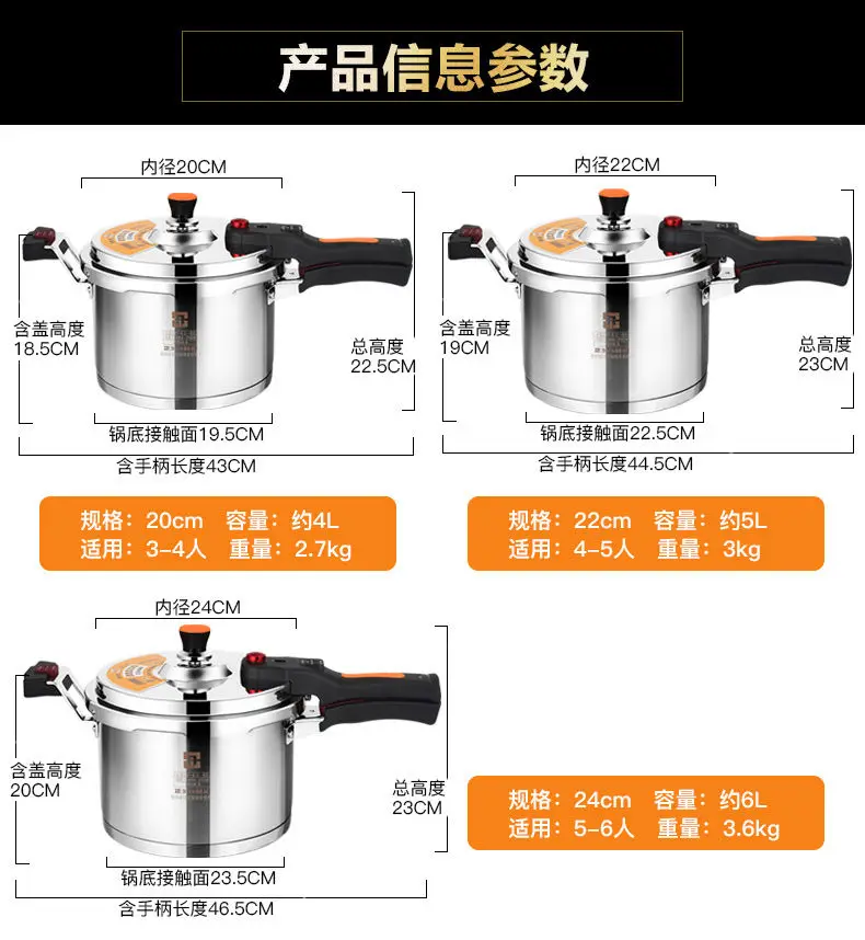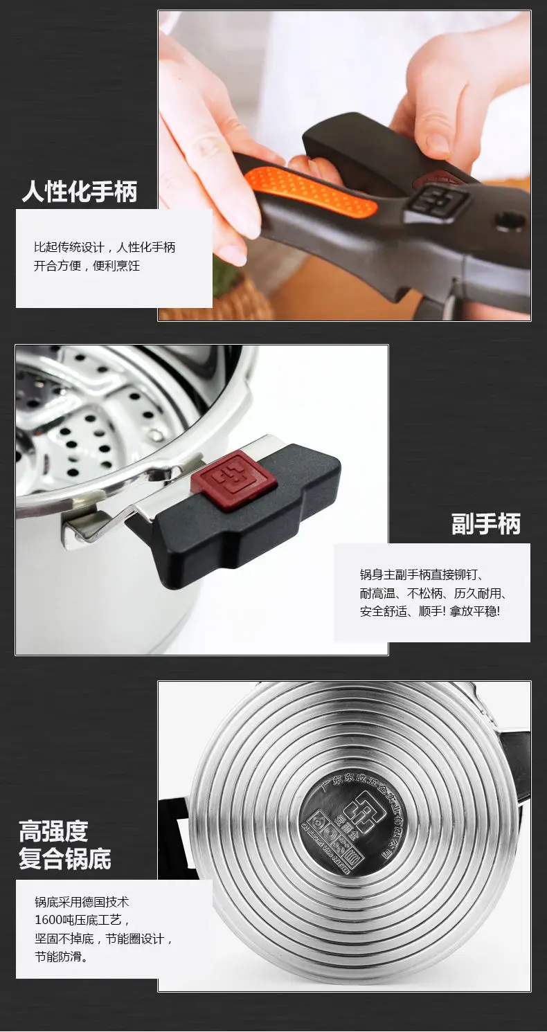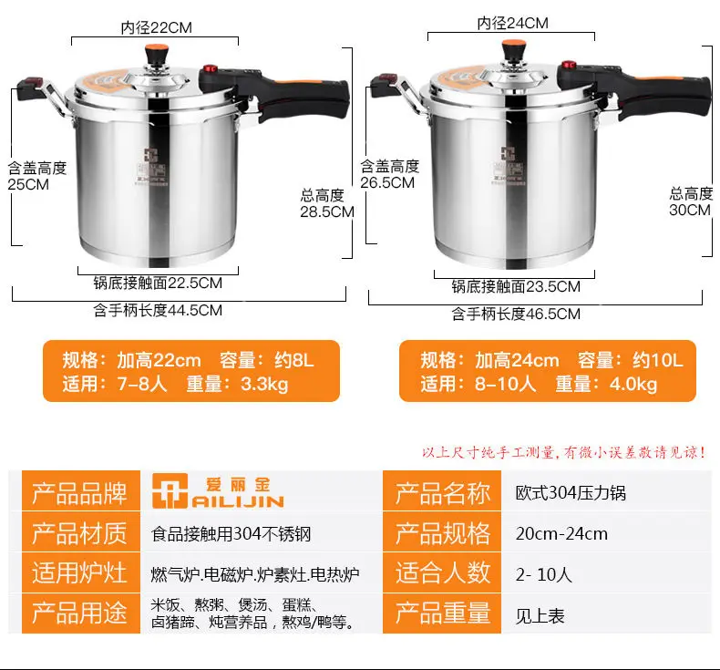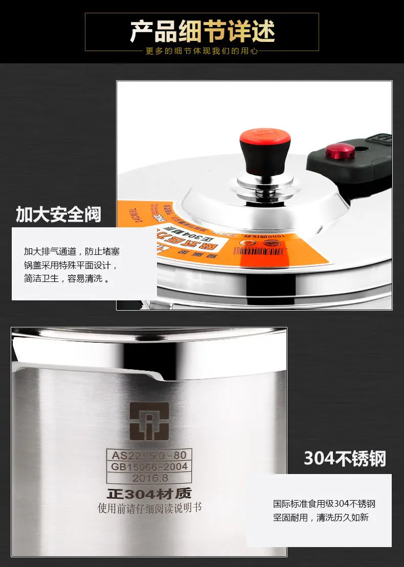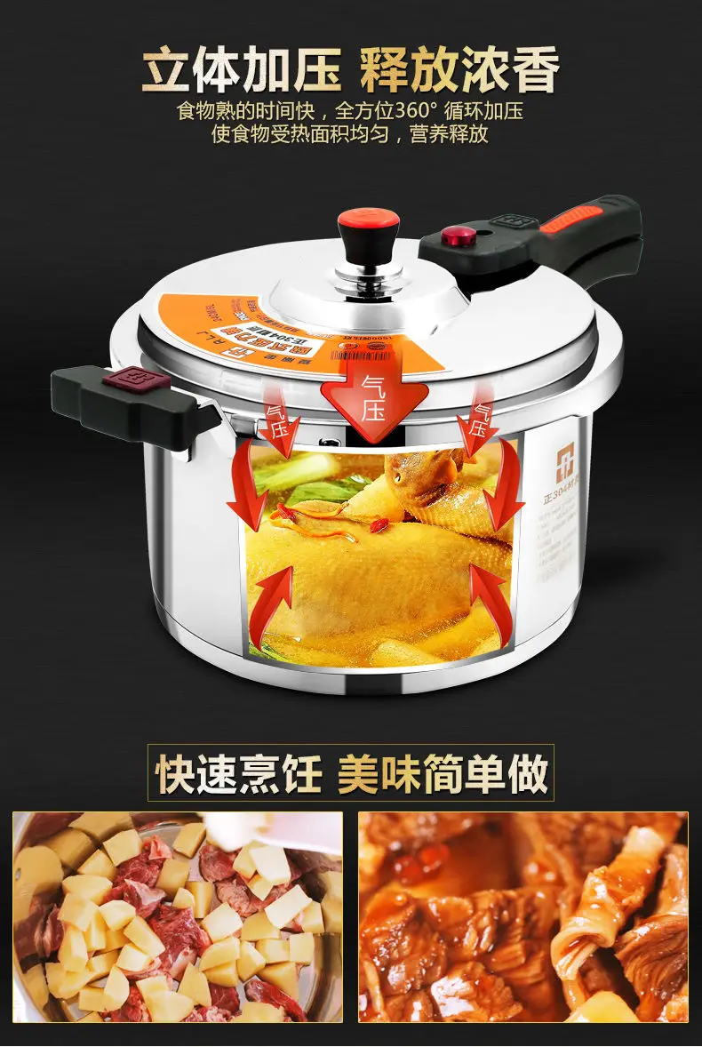 طنجرة ضغط شديدة التحمل مقاومة للانفجار ، فولاذ مقاوم للصدأ ، للاستخدام المنزلي والتجاري مع جدران وعاء سميك للغاية
