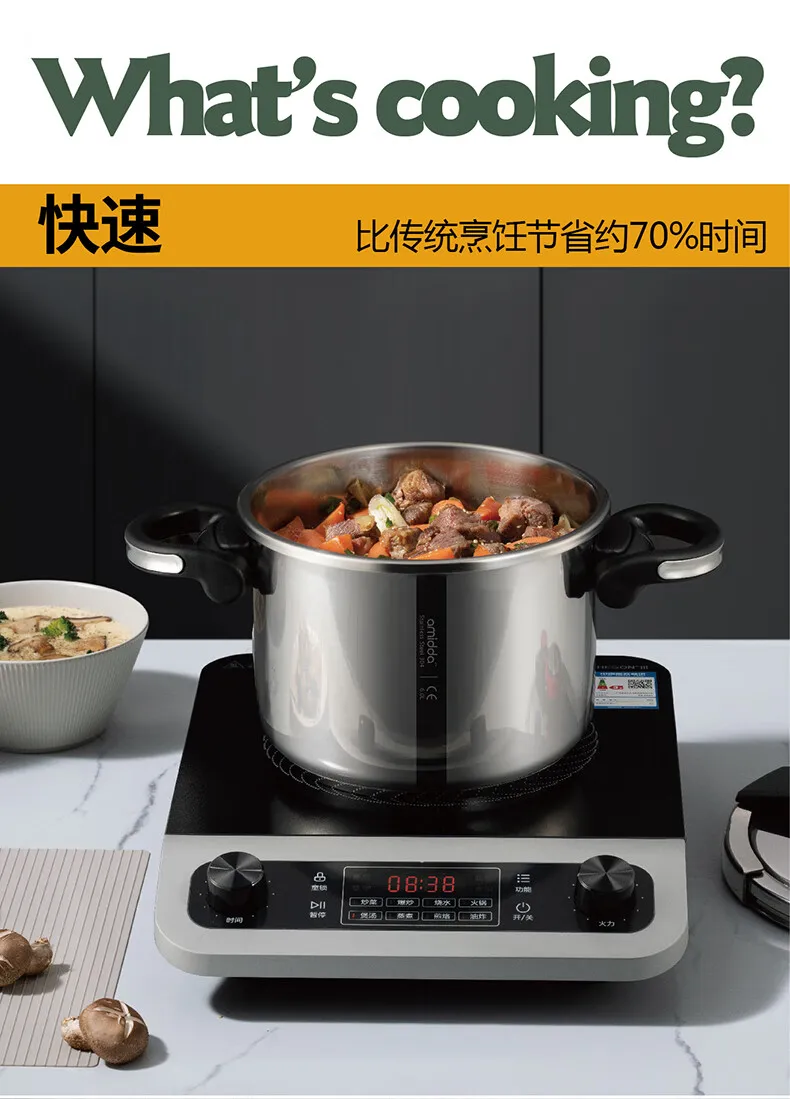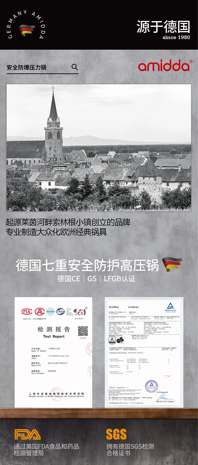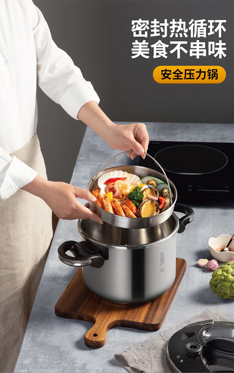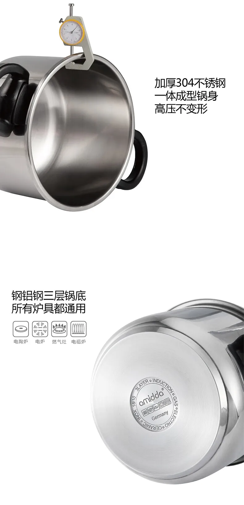 طنجرة ضغط غاز أميدا ألمانية ، فولاذ مقاوم للصدأ ، تصميم مقاوم للانفجار ، آمن ومتين