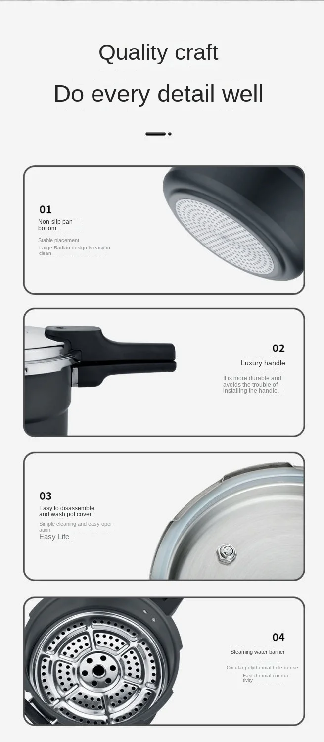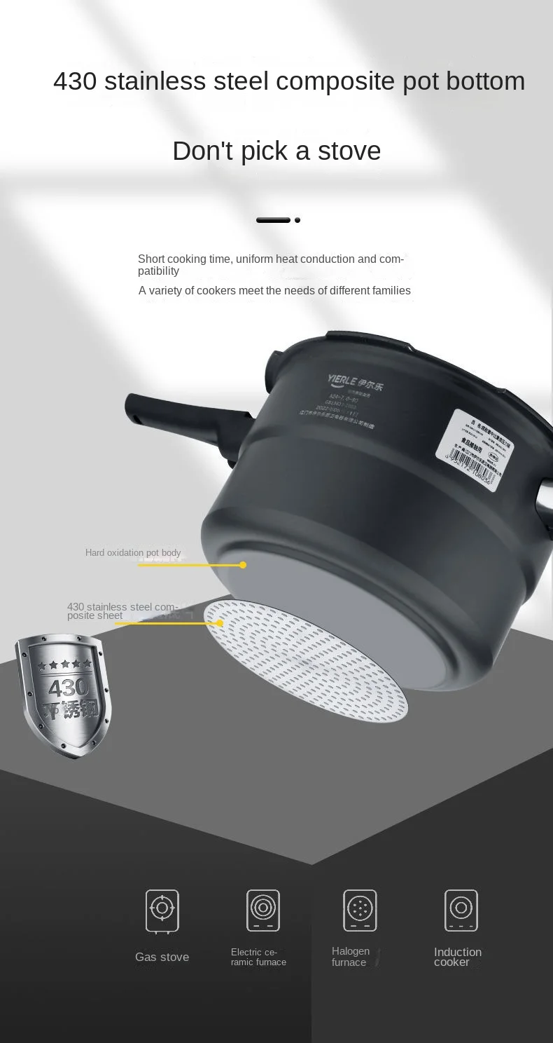 طنجرة ضغط من الفولاذ المقاوم للصدأ فائقة المتانة لمواقد الغاز والحث مع طلاء غير لاصق وميزات السلامة