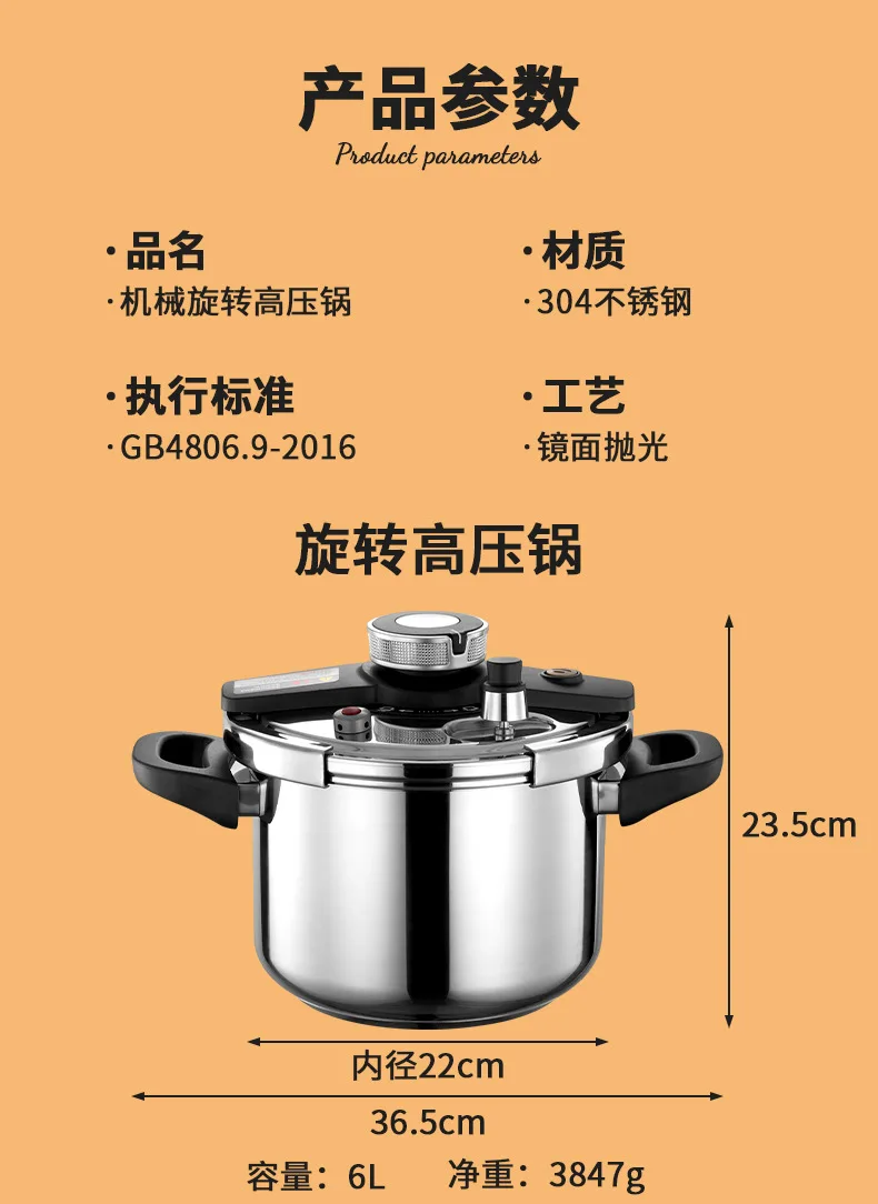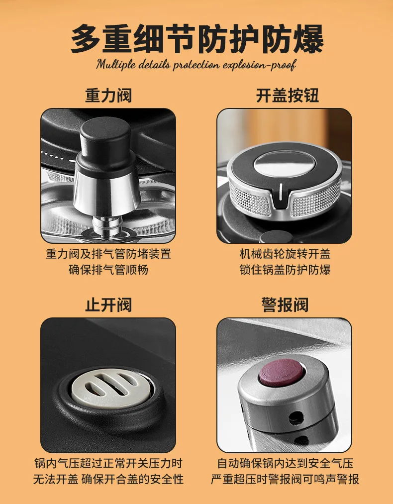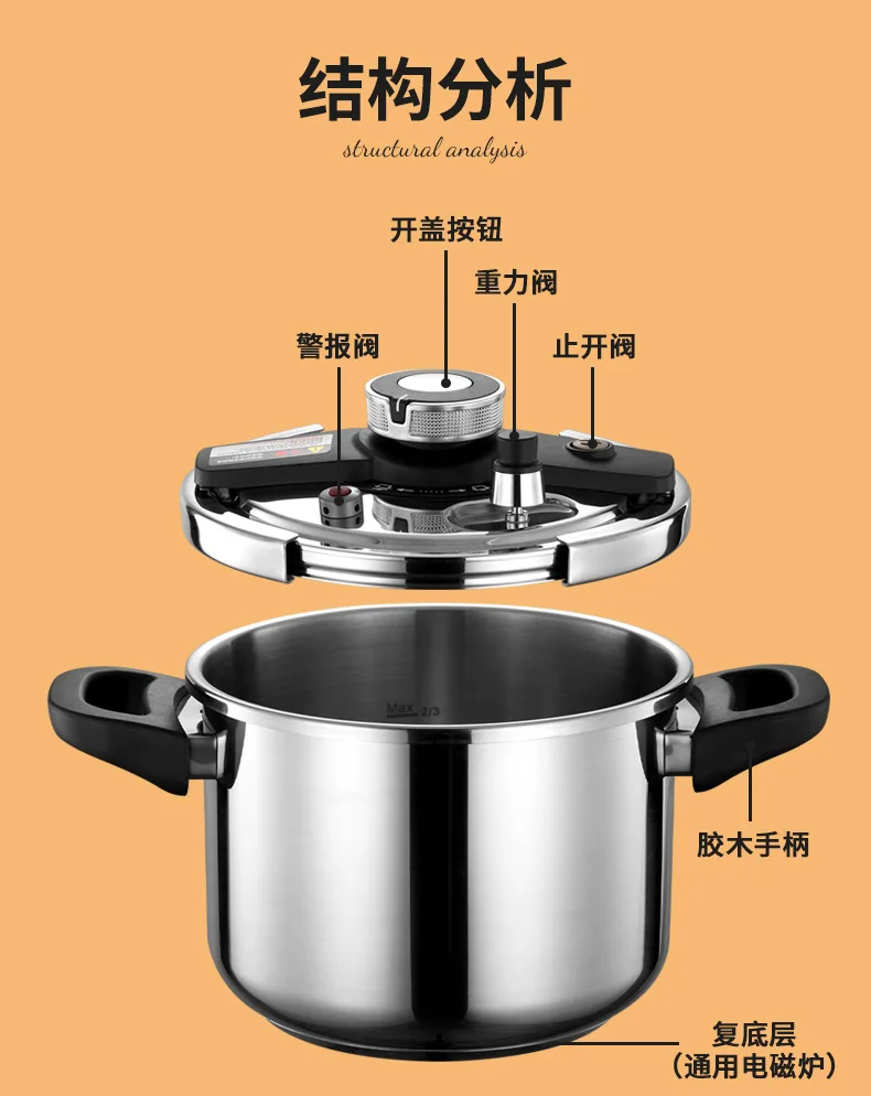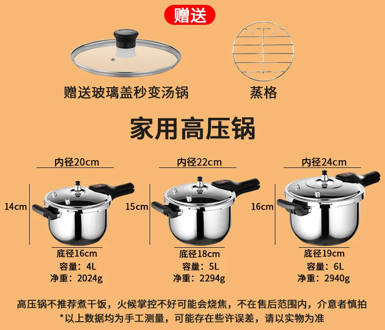 طباخ ضغط مقاوم للانفجار من الفولاذ المقاوم للصدأ ، طهي سريع ، ضغط عالي ، وعاء حساء ، متعدد الطباخ ، 100 كيلو باسكال ، 4 لتر ، 5 لتر ، 6 لتر ، 8 لتر