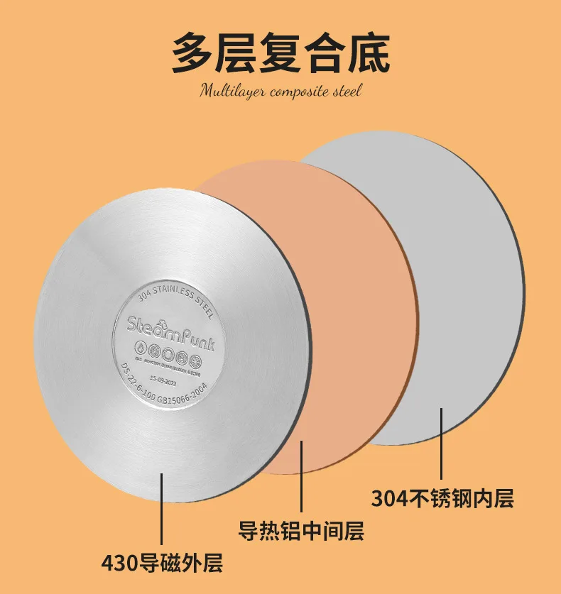 طنجرة ضغط 100Kpa مقلاة غير لاصقة من الفولاذ المقاوم للصدأ طنجرة ضغط مفتوحة 360 درجة طنجرة مطبخ غير مطلية مقلاة ضغط