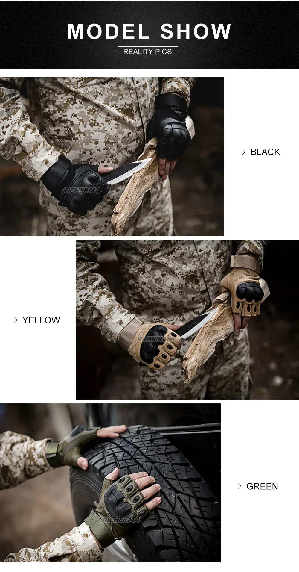 - Feature1: Motorcycle Fingerless Gloves