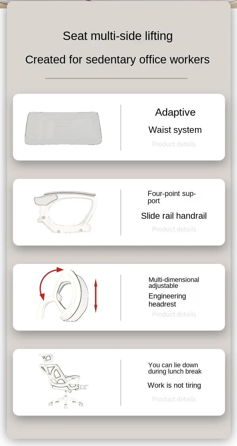 كرسي حماية الخصر ، مريح ، كرسي كمبيوتر ، كرسي مكتب ، قماش شبكي منزلي ، كرسي ظهر مزدوج ورفع