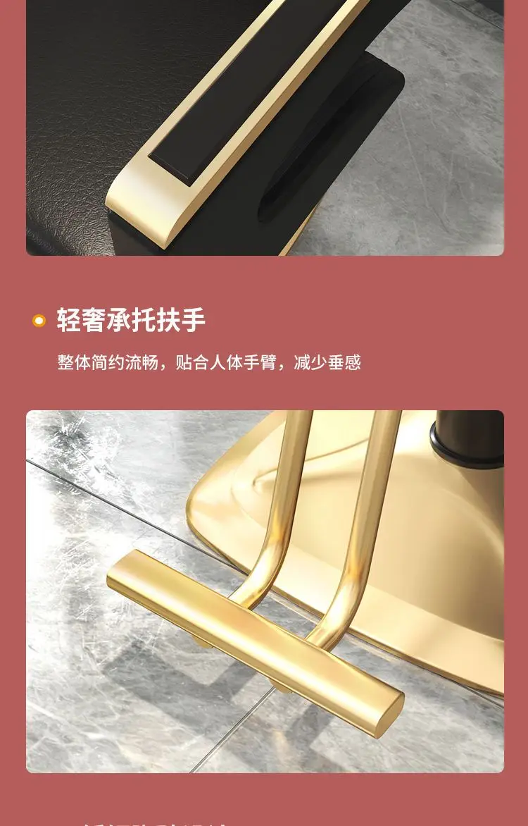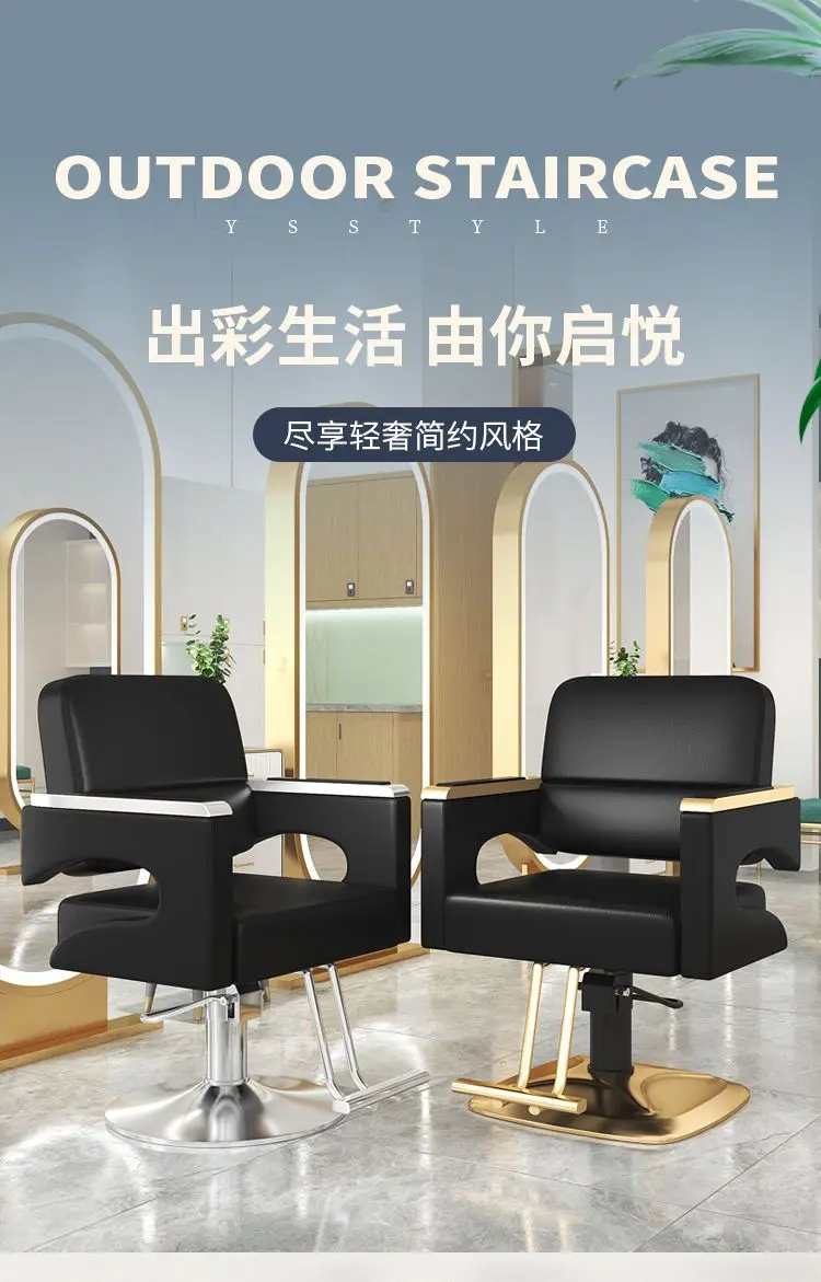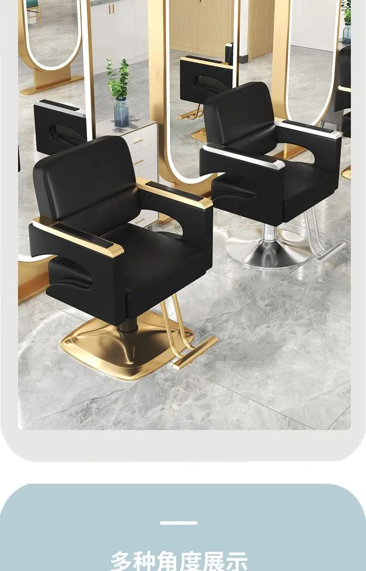 كرسي صالون شعر خاص ، كرسي دوار بزاوية ، كرسي عامل كبير ، صالون رفع ، قص شعر ، ضوء ، فاخر ، أسود ، ذهبي ، جديد ،