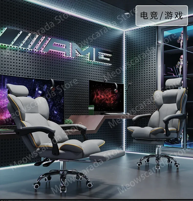 كرسي مكتب أبيض حديث مع مسند قدم متنقل ، كرسي ألعاب ناعم ، مريح وجمالي ، أثاث للاعبين