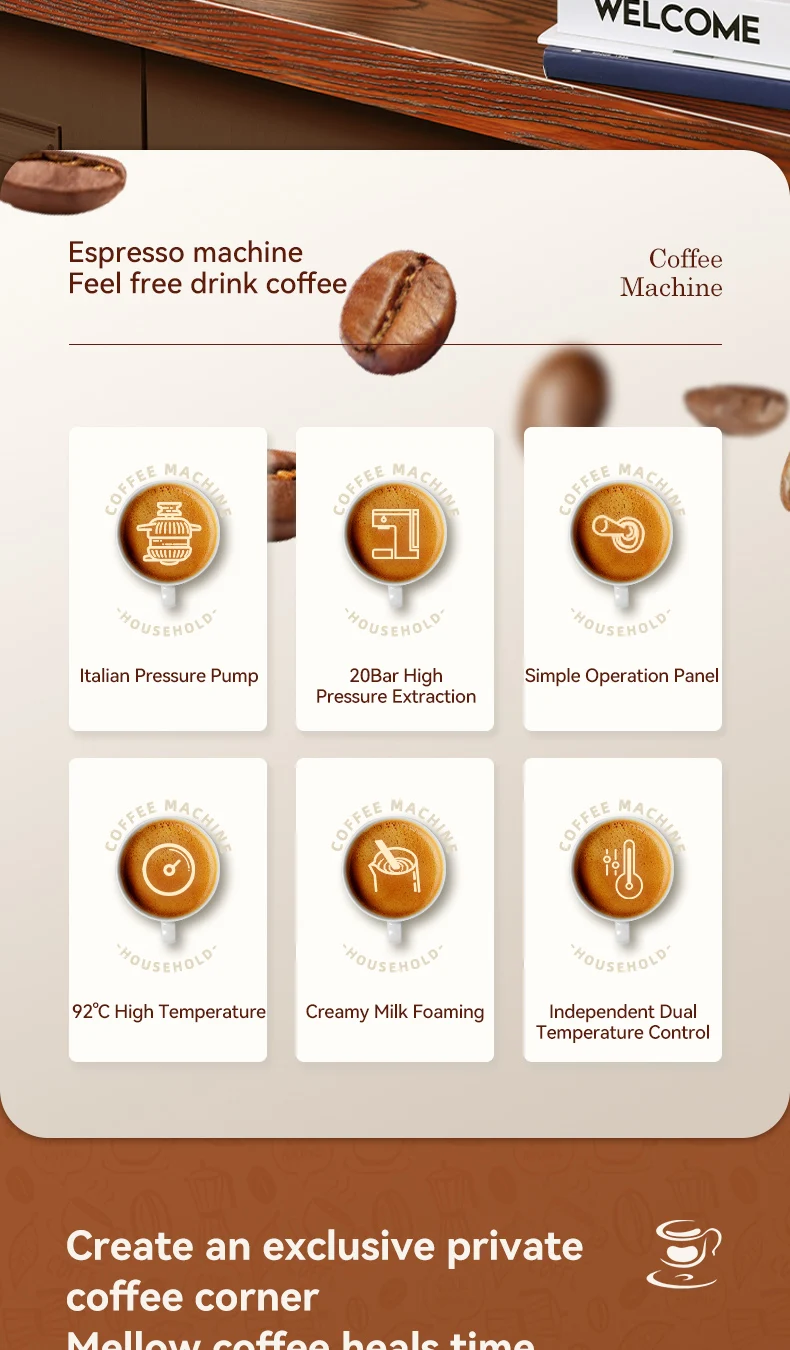 ماكينة قهوة إيطالية نصف آلية ، مزبد بخار ، ضغط عالي ، استخدام منزلي صغير ، استخدام مكتبيRead More