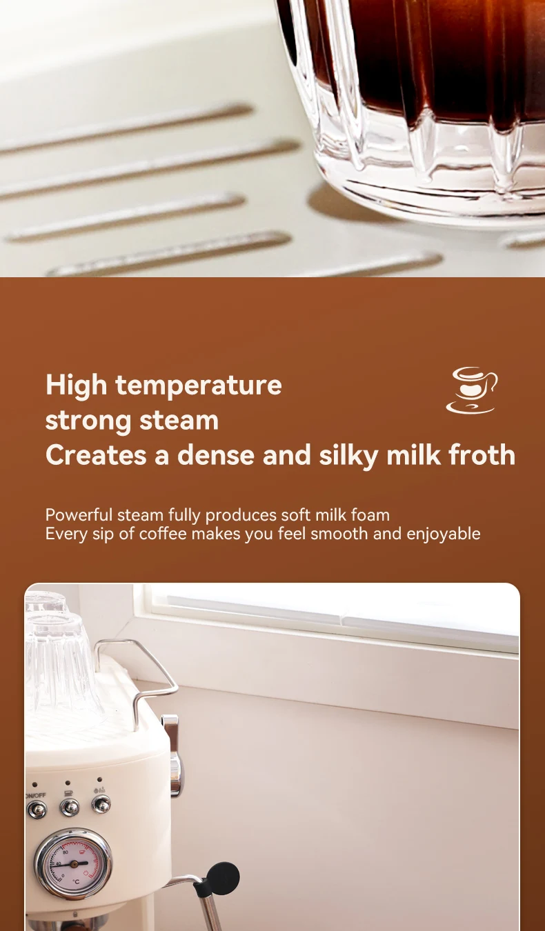 ماكينة قهوة إيطالية نصف آلية ، مزبد بخار ، ضغط عالي ، استخدام منزلي صغير ، استخدام مكتبي