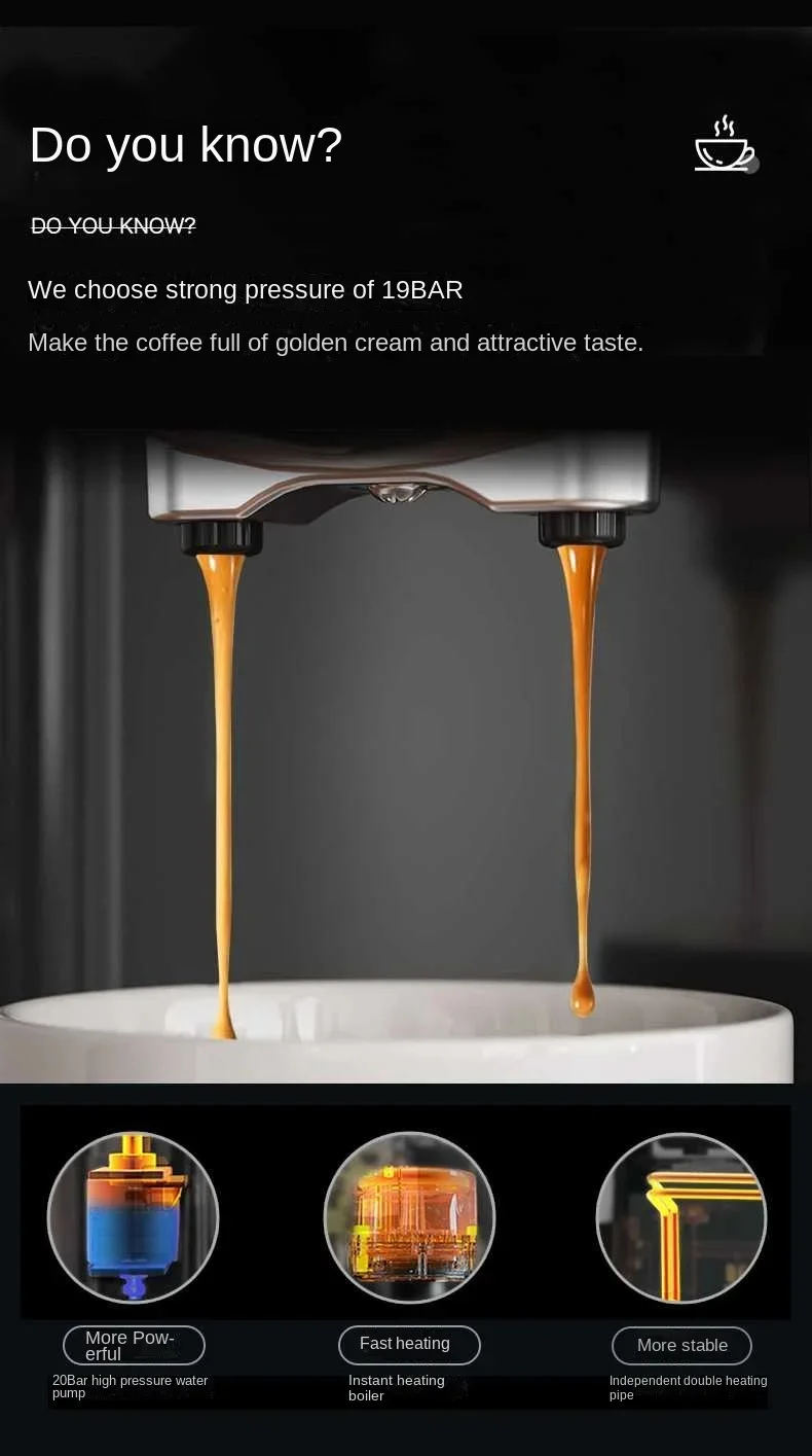 ماكينة اسبريسو نصف أوتوماتيكية ، ماكينة صنع القهوة مع وظيفة رغوة الحليب ، منزلية إيطالية ، 20 بار