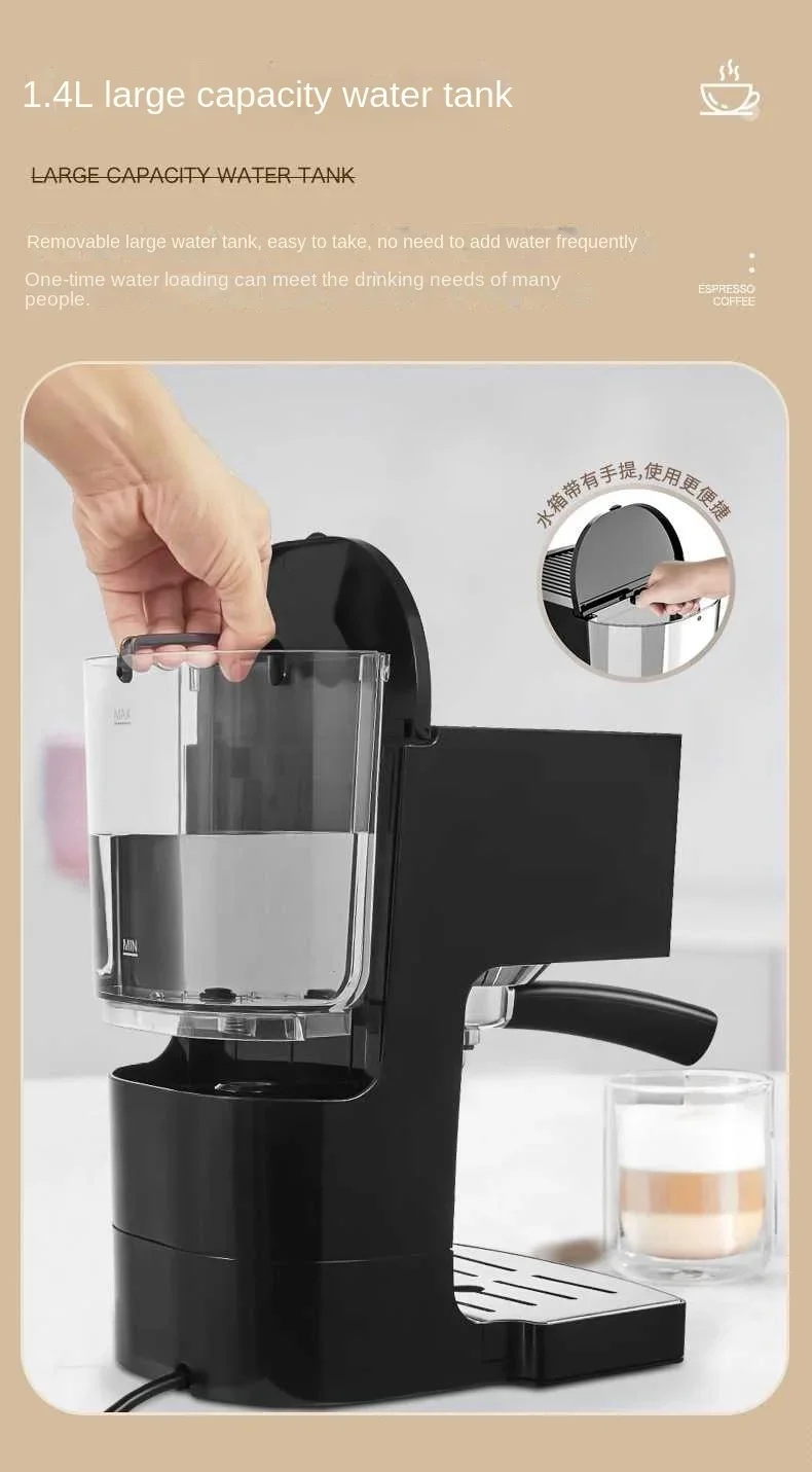 ماكينة صنع القهوة الأوتوماتيكية بالكامل ، ماكينة صنع الحليب الإيطالية الصغيرة ، ماكينة صنع القهوة المتكاملة ذات الضغط العالي ، 19bar ، 220 فولت ، 1240 واط ، 1.4L
