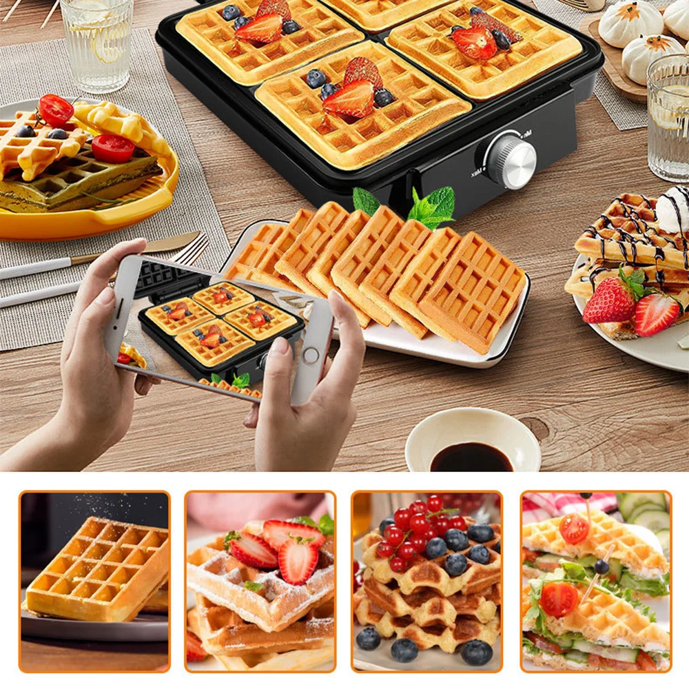 ماكينة صنع الوافل الكهربائية غير اللاصقة ، التحكم في درجة الحرارة ، التسخين المزدوج ، فرن كعكة البيض ، وافل البيض ، ماكينة المنزل ، 4 مقلاة