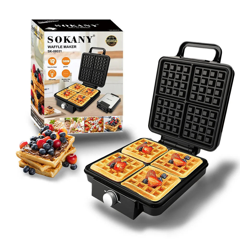 موقد كهربائي دوار لصنع الوافل ، متجر شاي الحليب ، صانع الكعك ، كعكة مربعة منقوشة