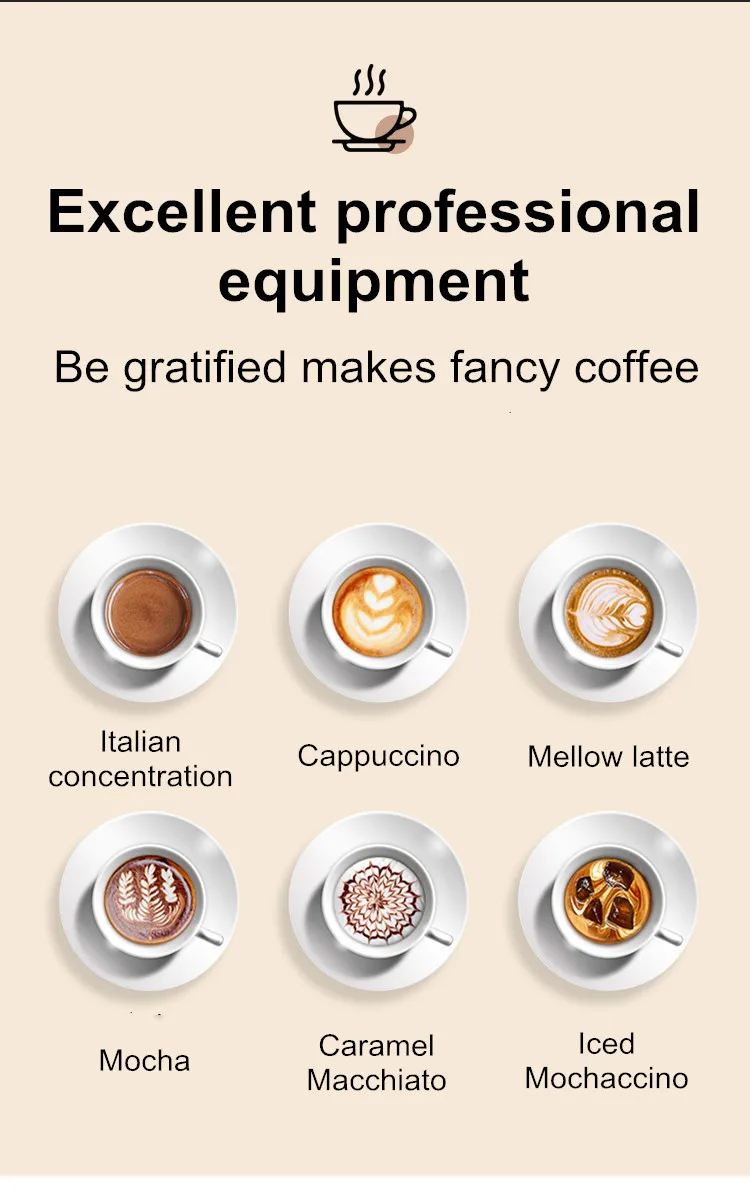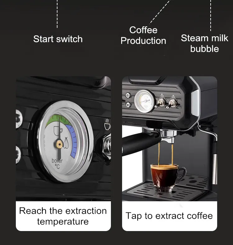 ماكينة قهوة نصف آلية ، تركيز إيطالي صغير ، استخلاص بالضغط العالي ، بخار رغوي ، ماكينة الكل في واحد ، منزلية