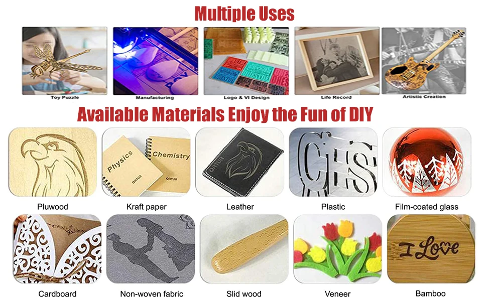 ضغط ltra دقيق: قوة الليزر 5-W ، وينخفض نطاق التركيز في الليزر فائق الدقة إلى 0.5 mm². يمكن لليزر عالي الكثافة أن يقطع بسهولة 12 من الخشب السميك والأكريليك الأسود ؛ يمكن أن ينقش مباشرة معدن الفولاذ المقاوم للصدأ والسيراميك الناعم. يمكن أن يكون الجهاز متوافقًا مع برامج النقش المتقدمة المختلفة مثل LaserGRBL ، LightBurn