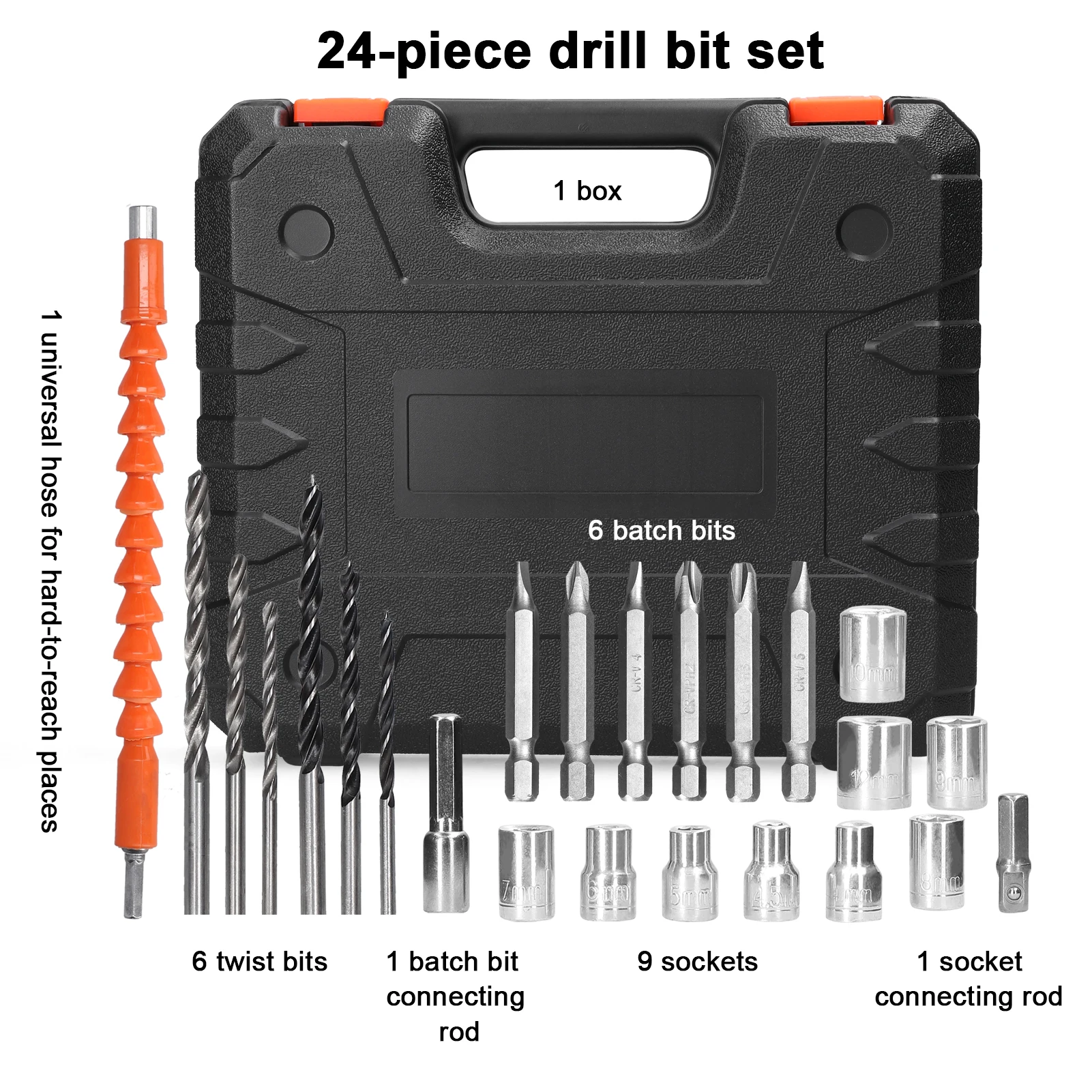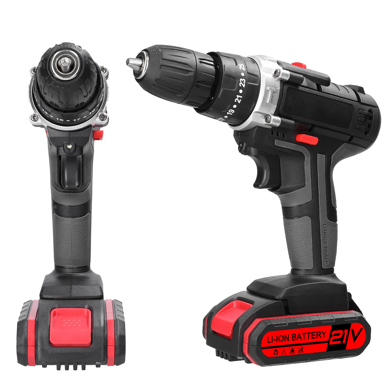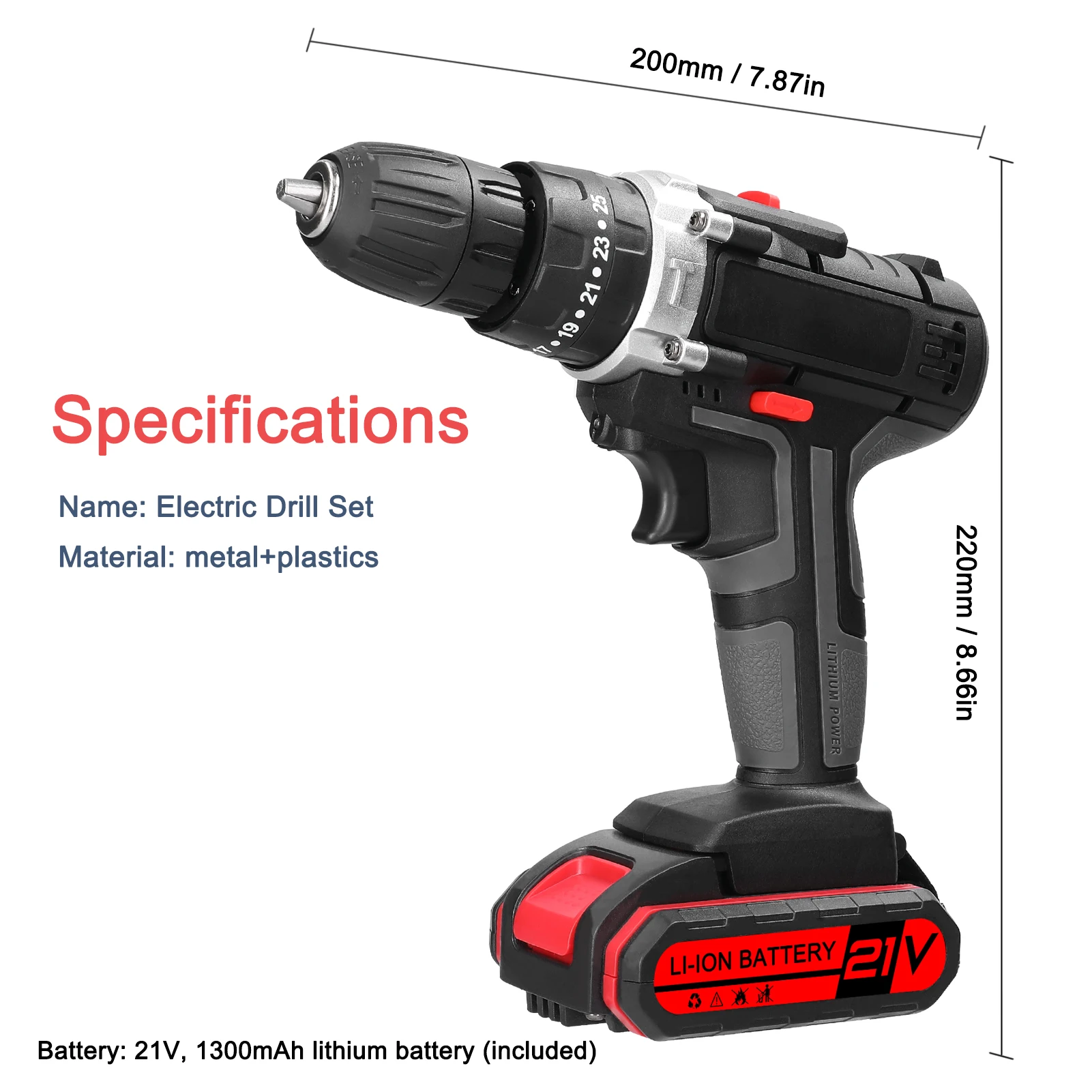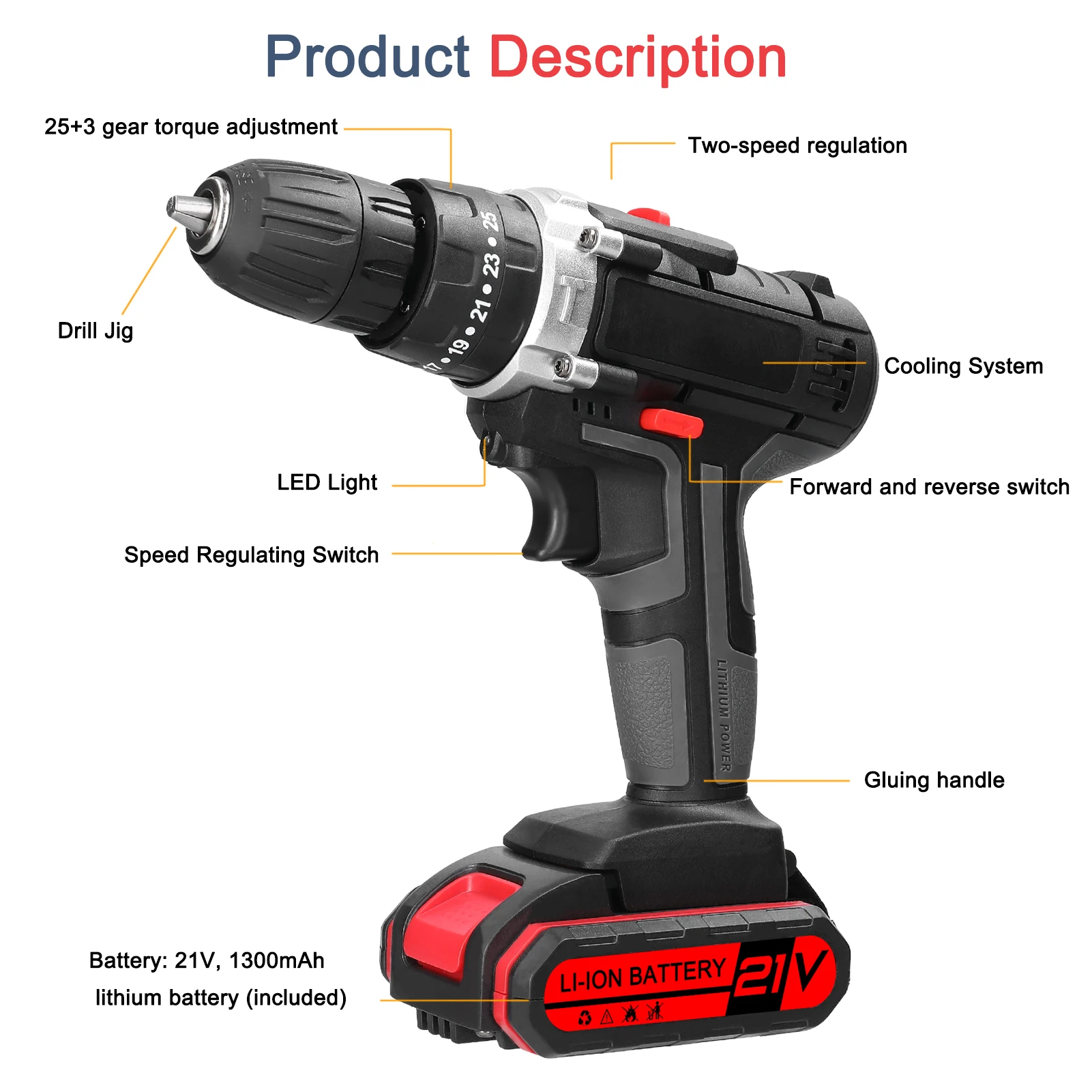 مجموعة مثقاب كهربائي لاسلكي 21 فولت ، أدوات مفك كهربائي منزلية عالية الطاقة وقابلة لإعادة الشحن ومتعددة الوظائف