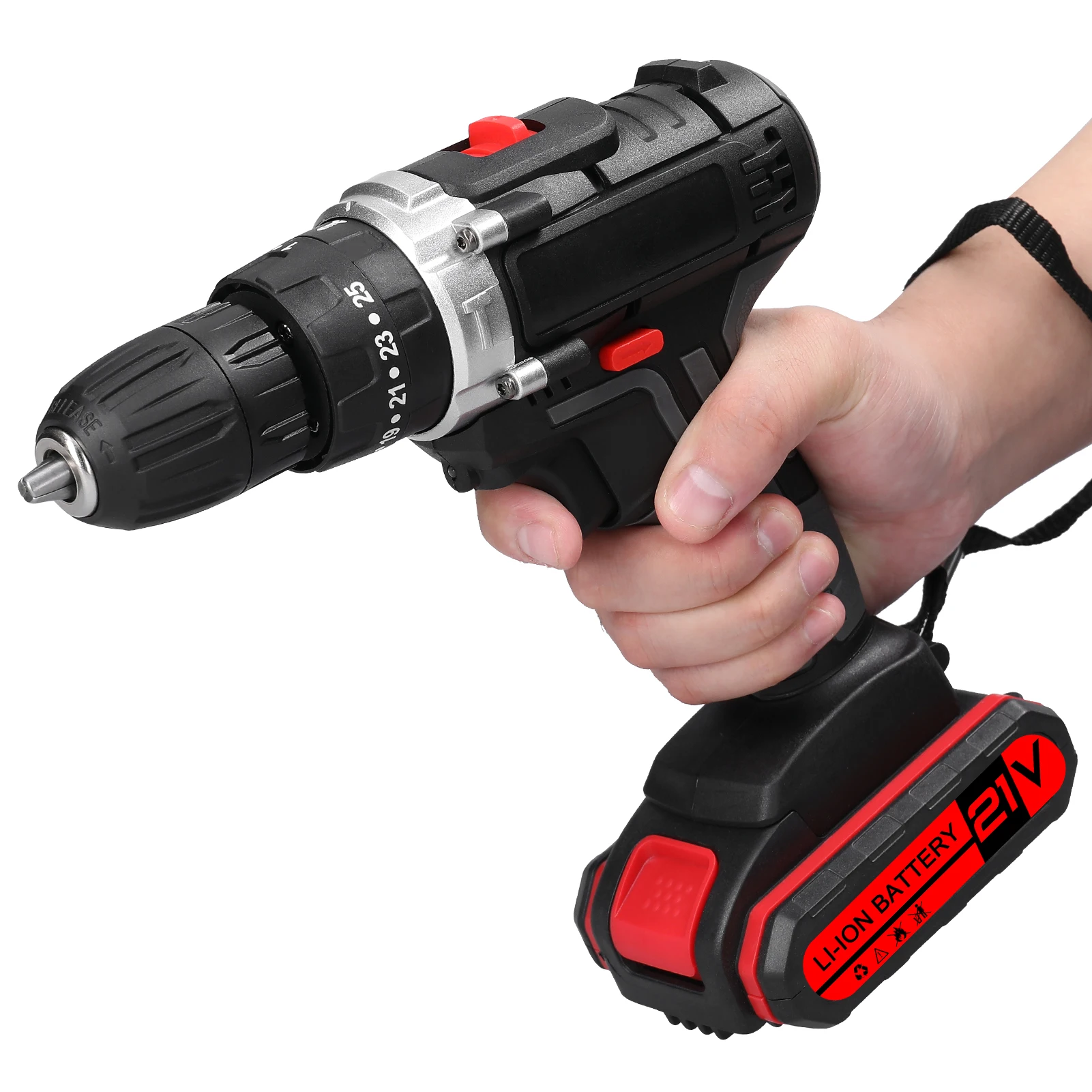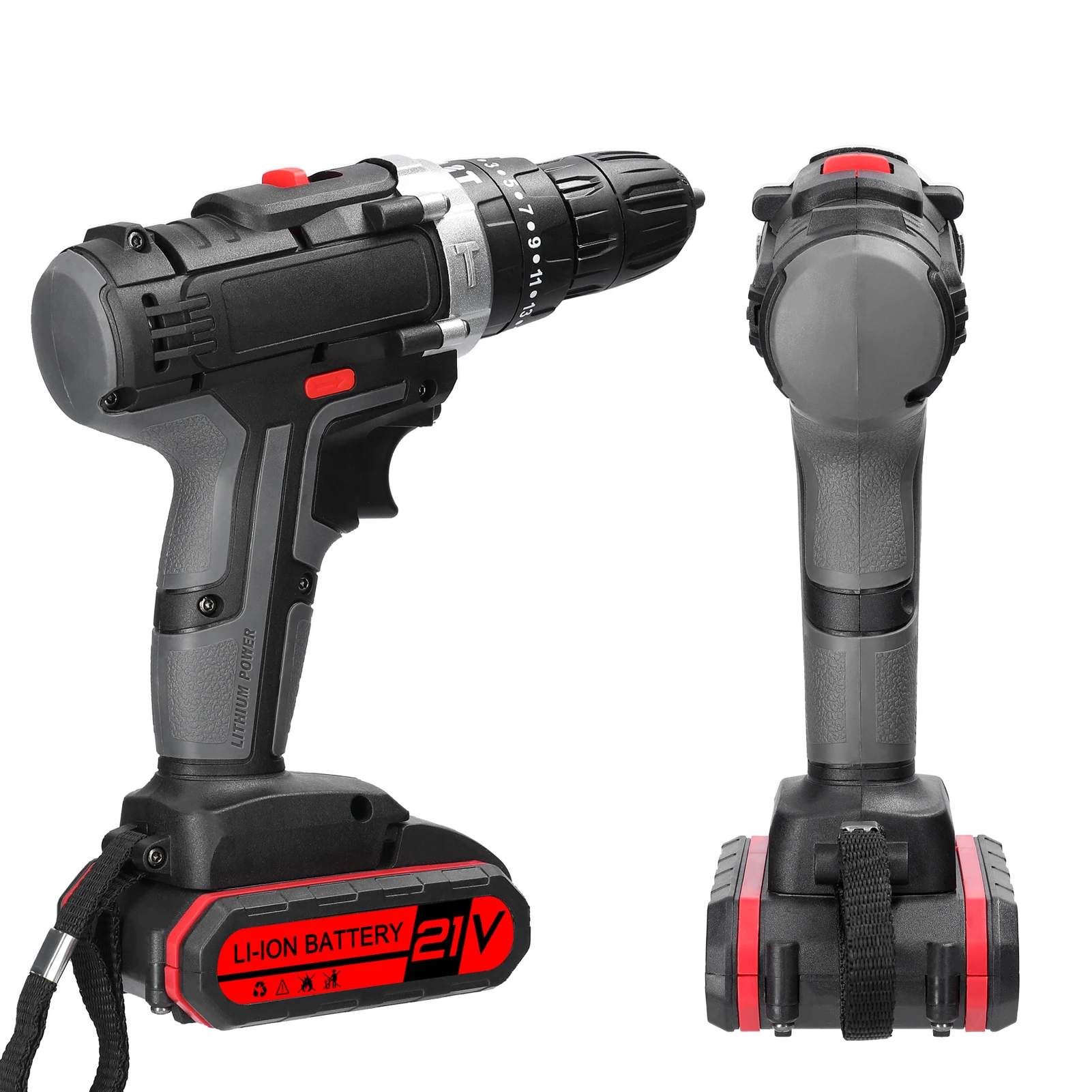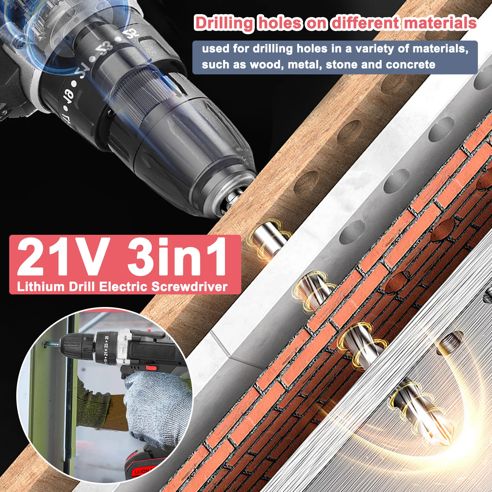 مثقاب كهربائي محمول باليد مع مفك ليثيوم ، محرك ناعم ، تنظيم سرعة ستبليس ، أداة طاقة فائدة ، 21 فولت ، 3in 1