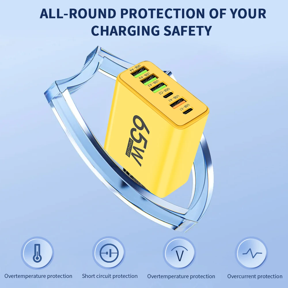 محول شحن سريع USB من النوع C ، شاحن حائط للهاتف المحمول ، شاحن سريع ، آيفون 13 ، 14 ، 15 ، سامسونج ، شاومي ، هاواوي ، 6 منافذ ، PD ، 65 واط