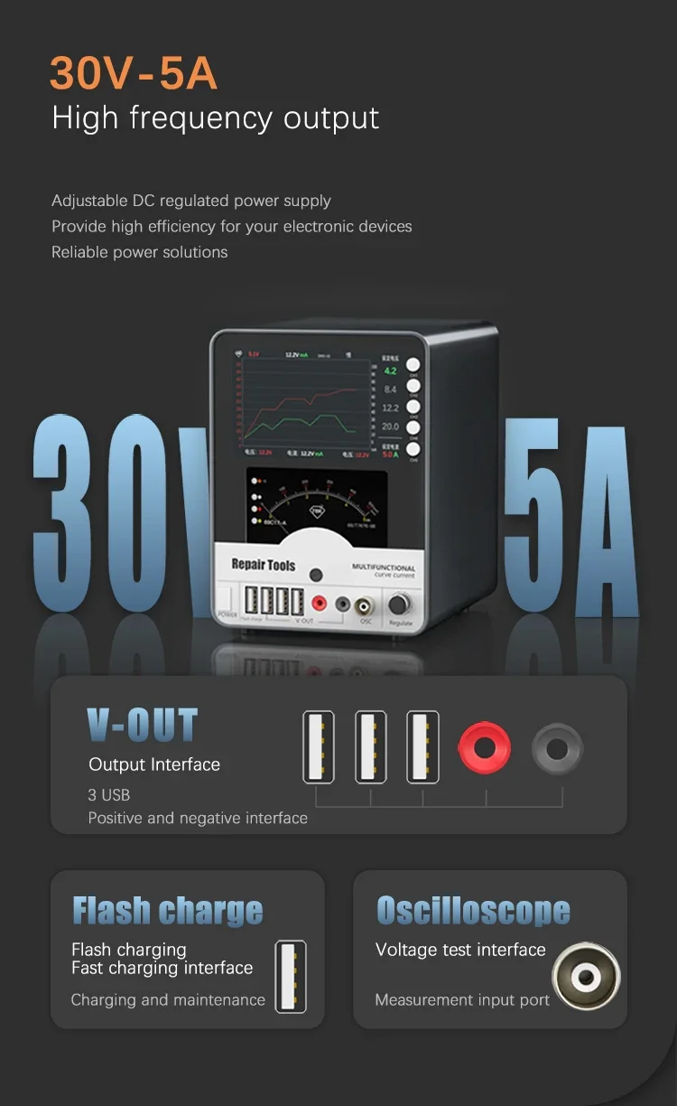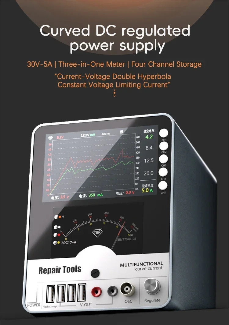 مصدر طاقة منظم منحني TBK تيار مستمر ، شحن منافذ متعددة ، 30 فولت ، 5A جهد تيار ، أداة إصلاح الحد من Hyperbola ، 217A