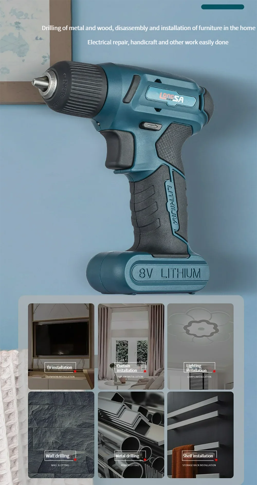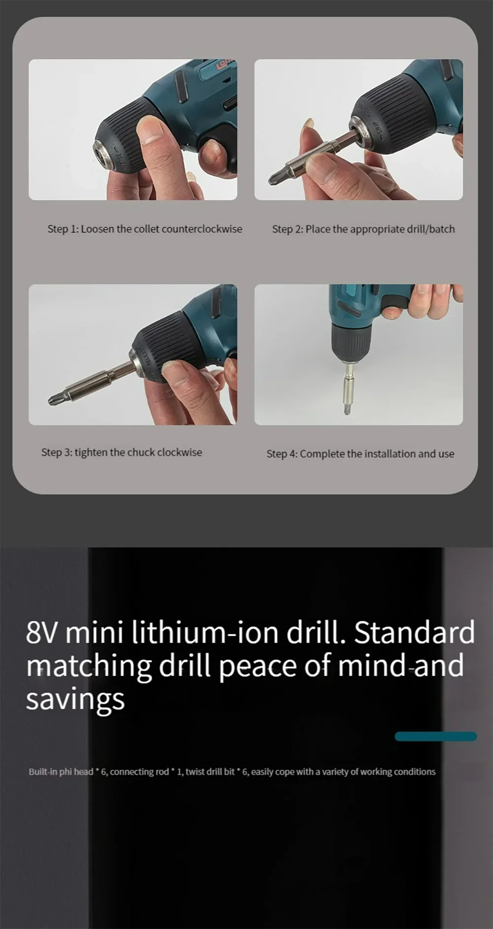 مفك كهربائي لاسلكي محمول ، مثقاب صغير ، شحن بطارية ليثيوم ، أدوات كهربائية قابلة لإعادة الشحن ، 8 فولت