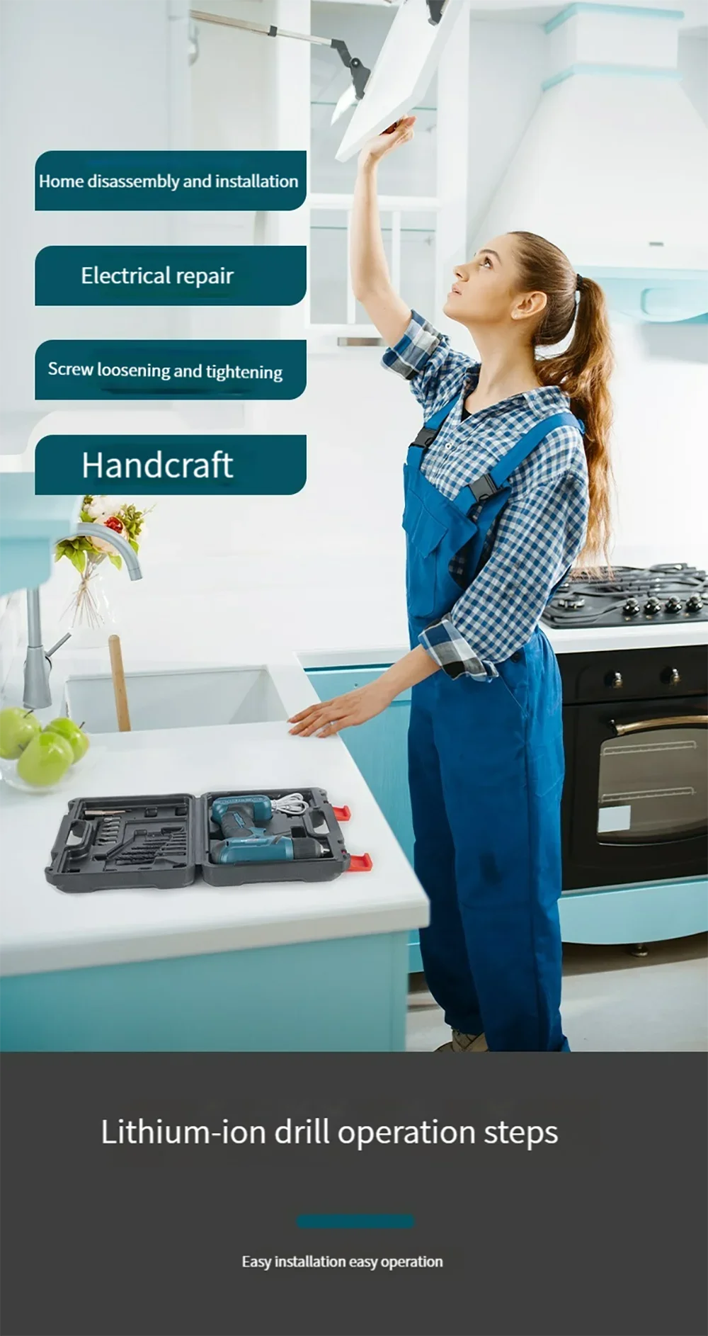 طقم مثقاب لاسلكي للرجال ، أداة كومبو للمنزل ، مجموعات أدوات منزلية ، مثقاب كهربائي مع عدة أدوات ، 12 فولت ، 21 فولت ، 59 ، 54 ، 48 ، 44 ، 34 أو
