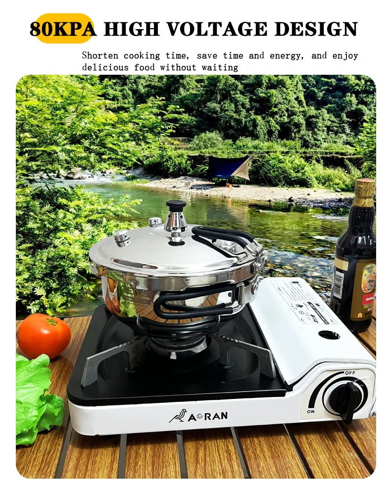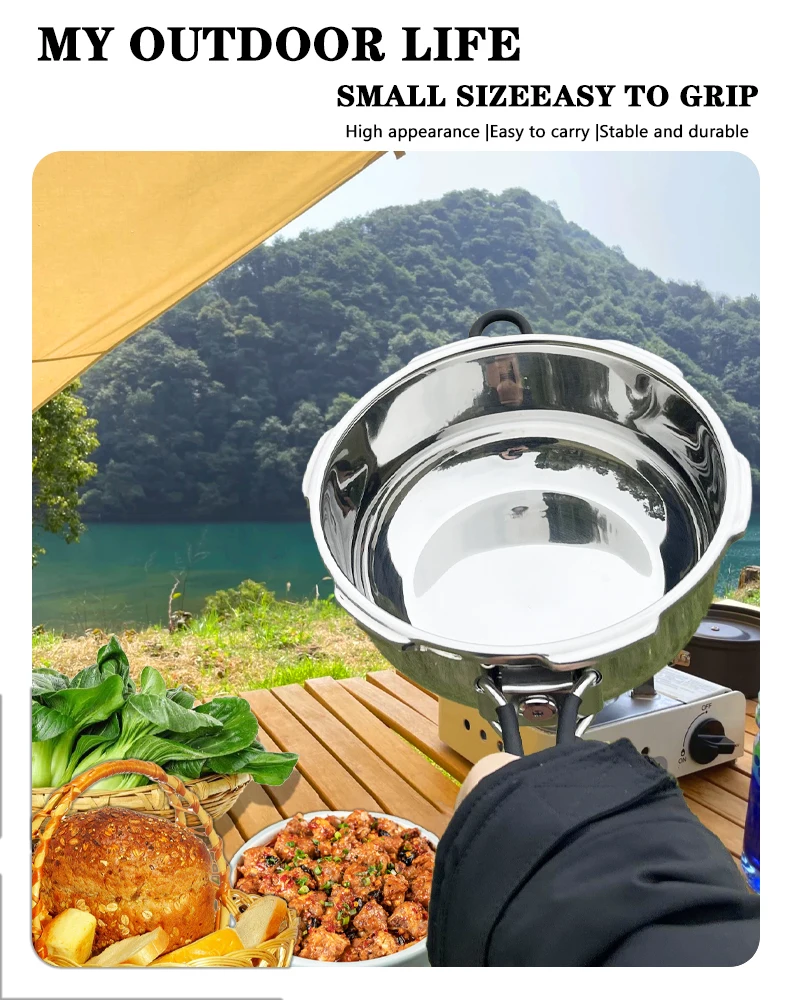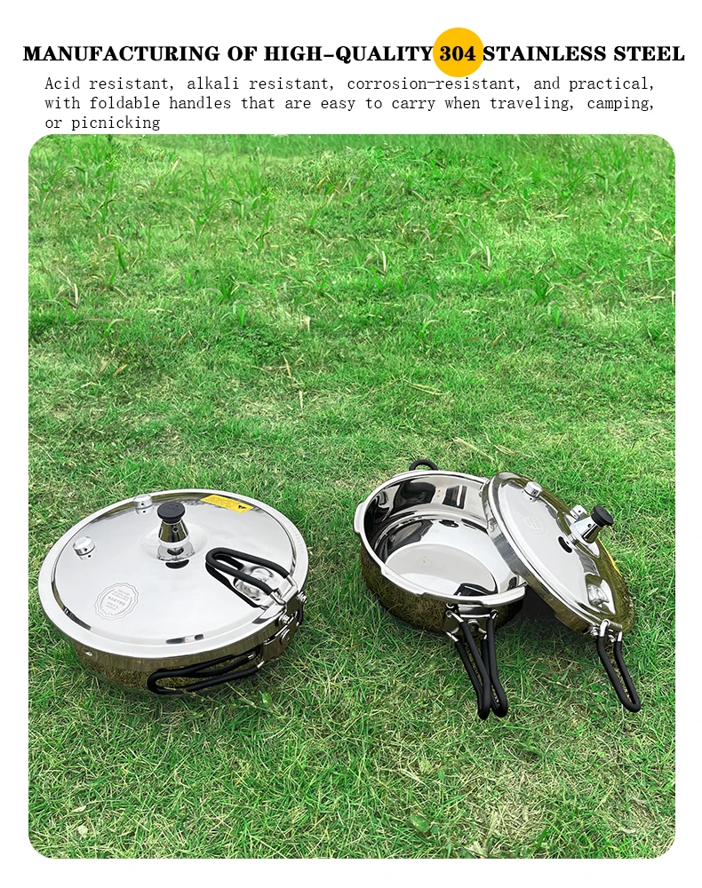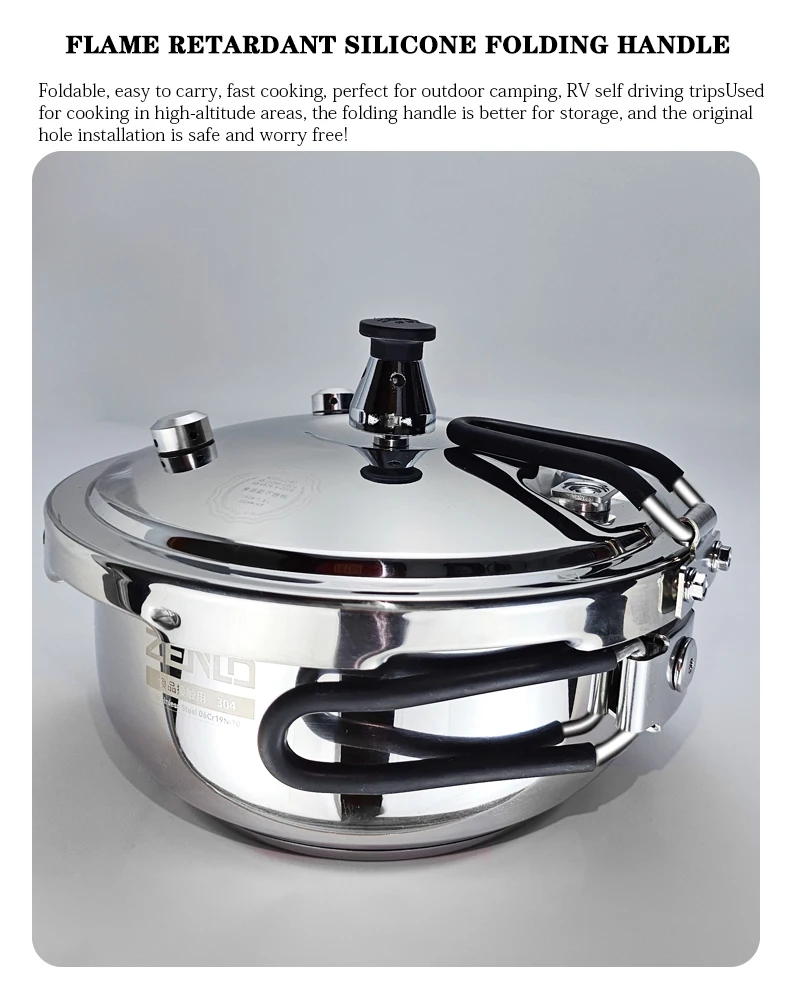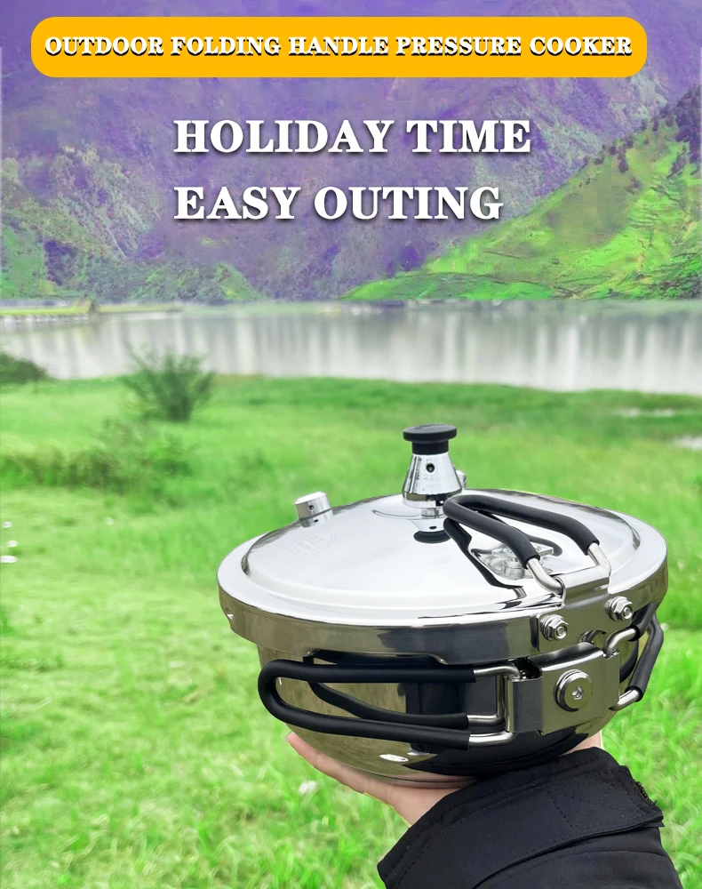 مقبض قابل للطي محبب 304 طباخ ضغط من الفولاذ المقاوم للصدأ في الهواء الطلق المشي على ارتفاع عالٍ لمدة 5 دقائق للطهي بسرعة 1.8 لتر وعاء ضغط صغير منخفض