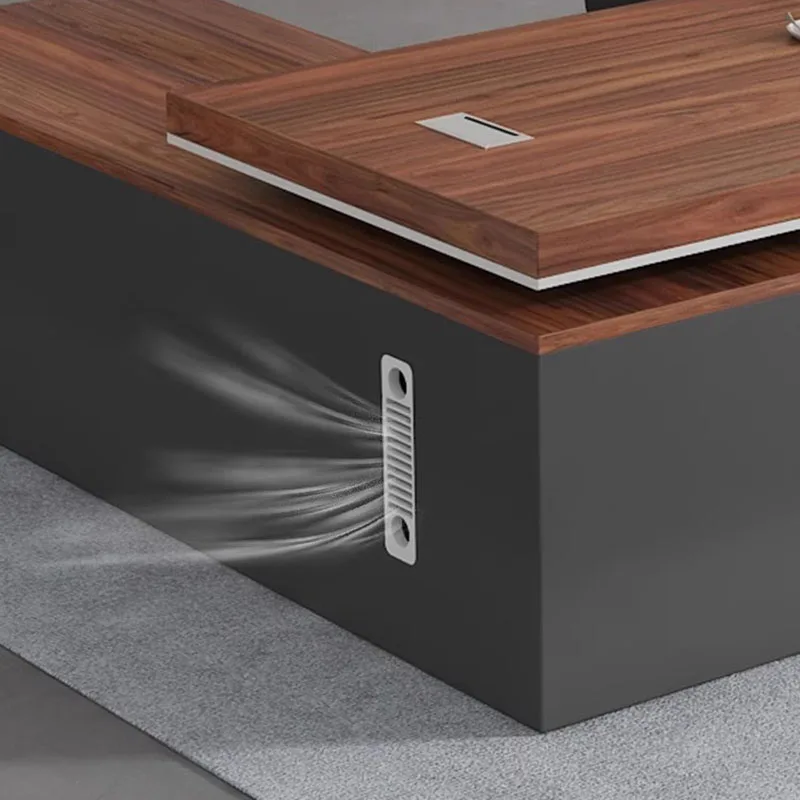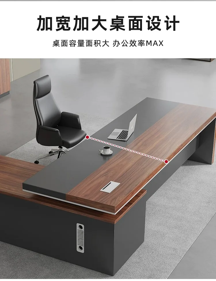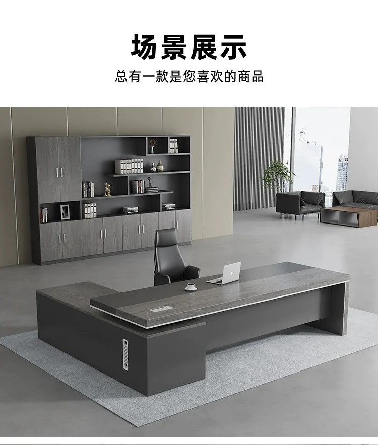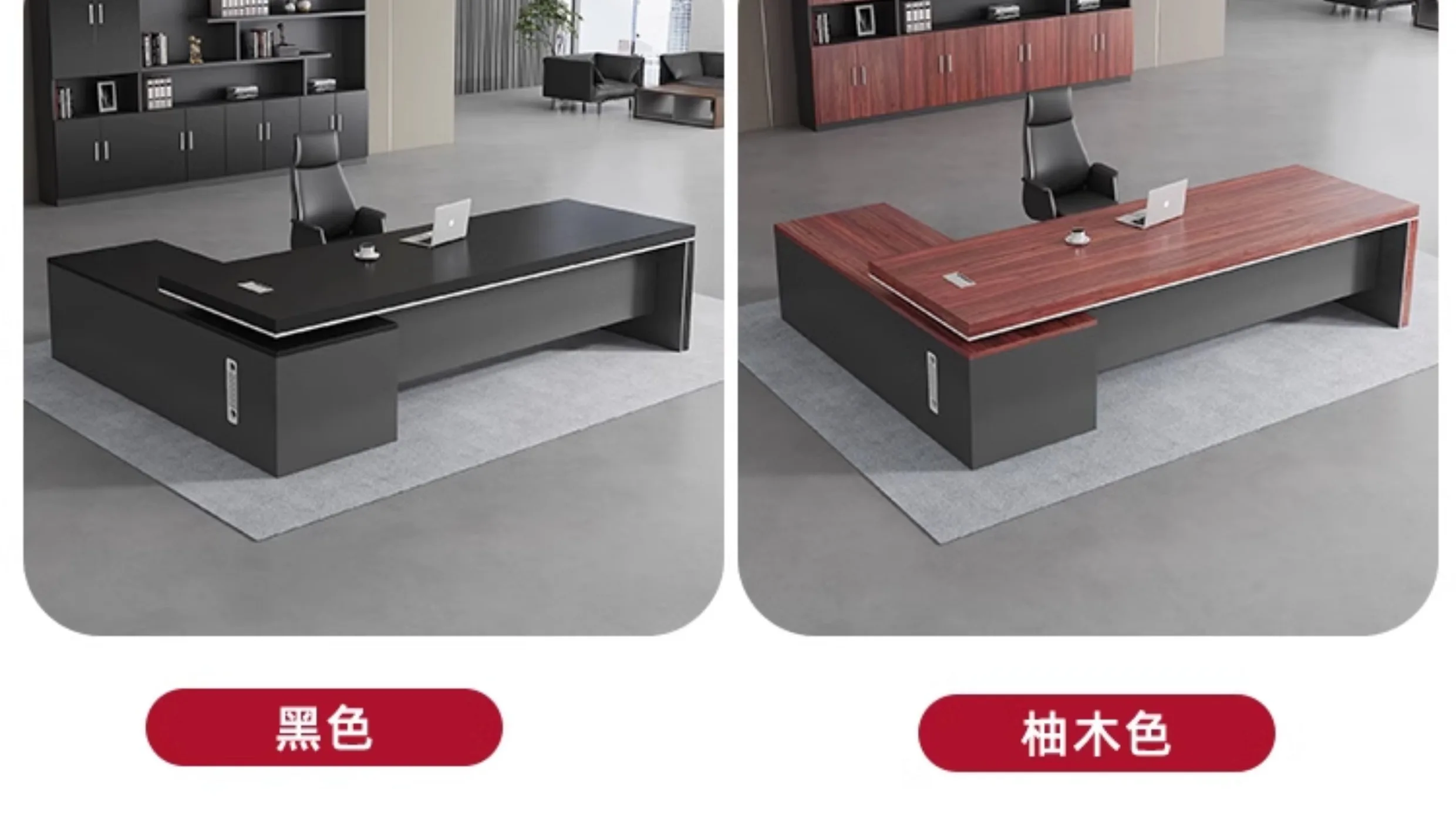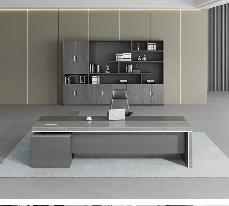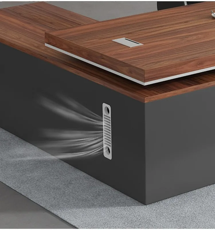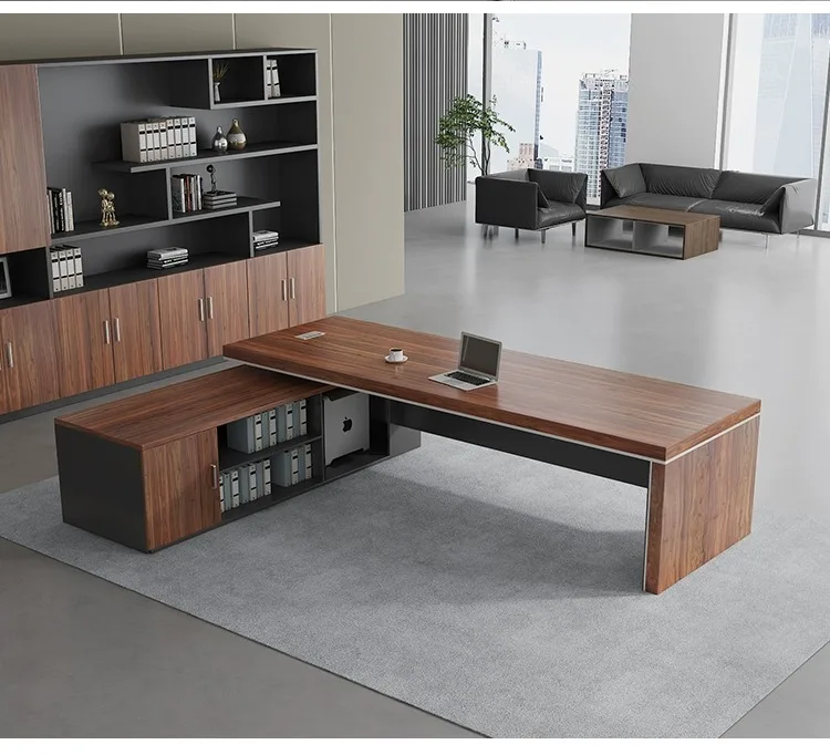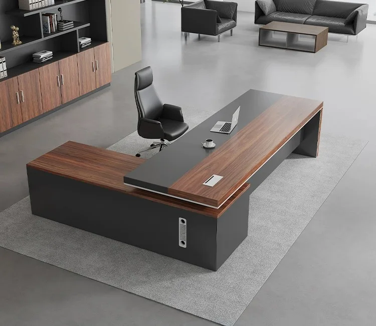 مكتب استقبال بسيط على شكل حرف L ، عمل تنفيذي للألعاب ، طاولات مؤتمرات عتيقة ، أرفف ، طاولة كمبيوتر محمول ، كتابة ، مطبخ