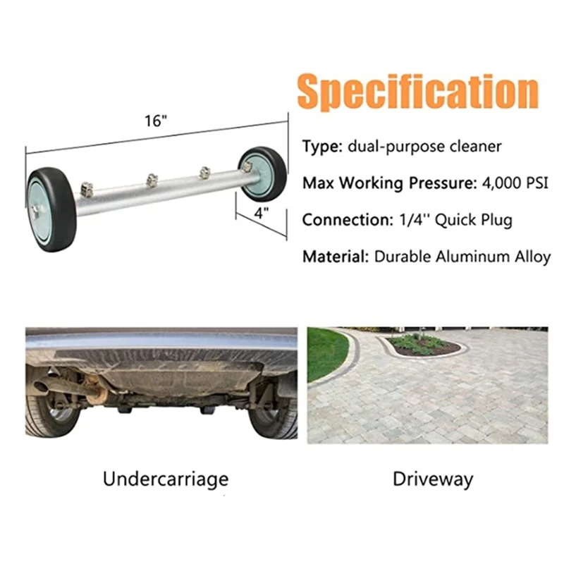 مناسب لتنظيف الجزء السفلي من السيارة والأرضية ، وساحات الفناء سهلة التنظيف ، والممرات ، وجوانب حمامات سباحة ، والأرصفة ، والممرات ، والطوابق ، والحطام الكبير.